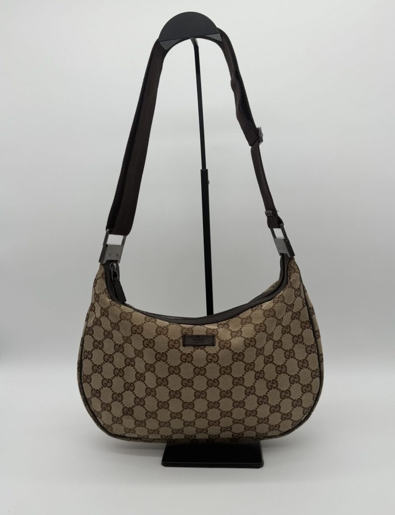 Hoe gaaf is deze pre-loved Gucci Half Moon bag? De tas heeft een vintage vibe en is perfect voor elke dag. Uitgevoerd in beige GG-canvas met donkerbruine leerdetails en zilverkleurige hardware straalt hij zowel klasse als casual stijl uit. Het serienummer is 122790. Dankzij de verstelbare canvasband draag je ‘m crossbody of over de schouder. Een echte must-have!