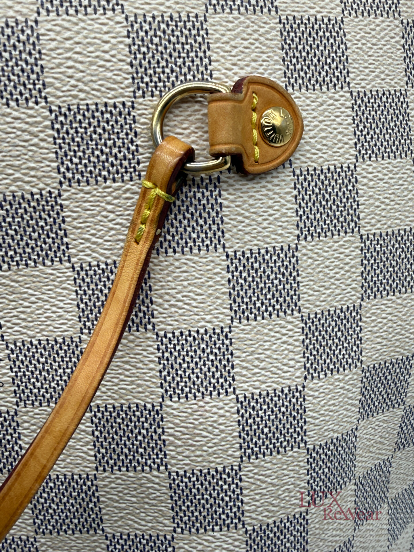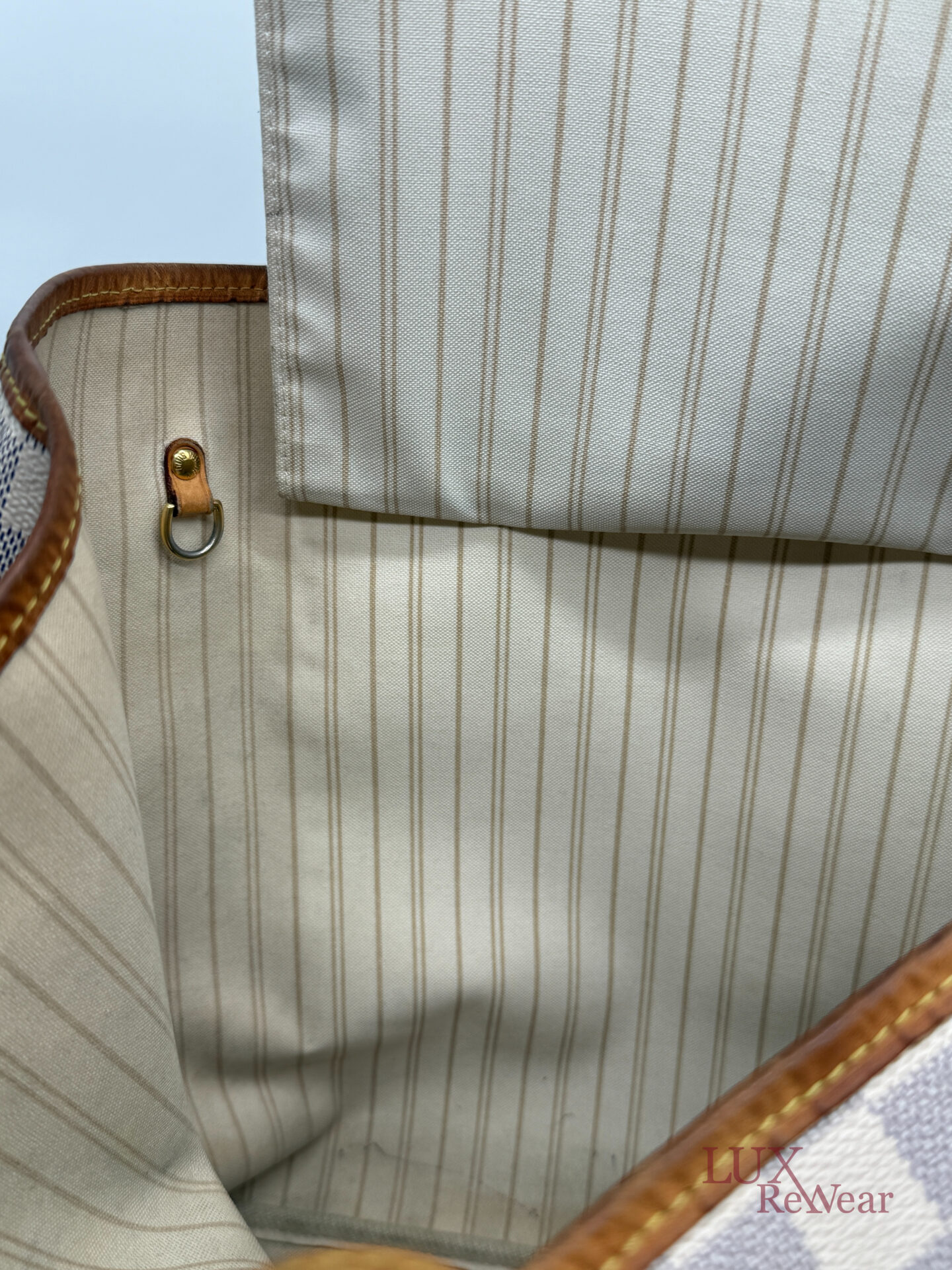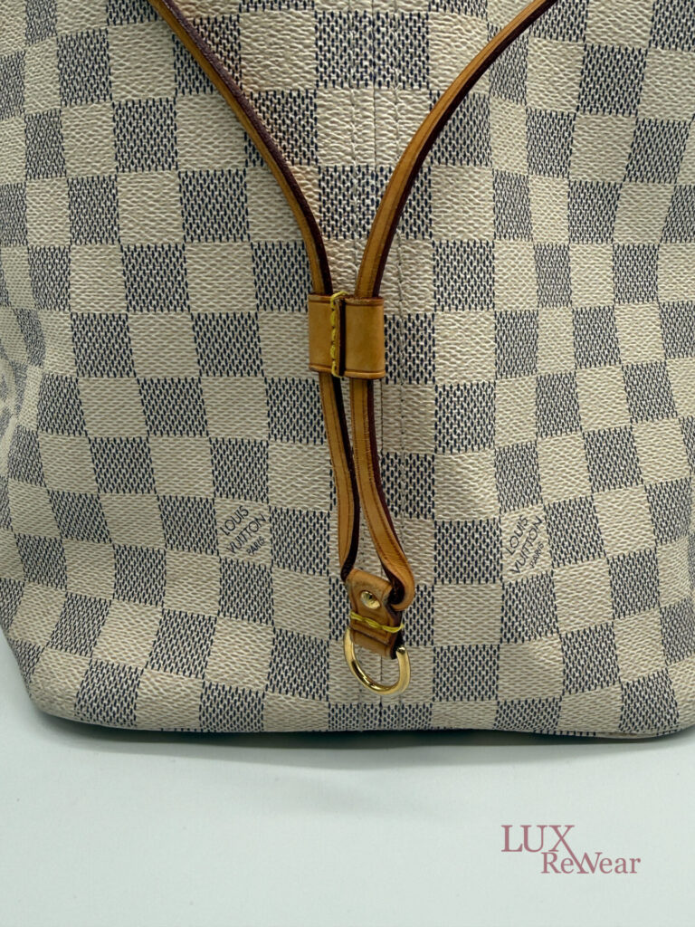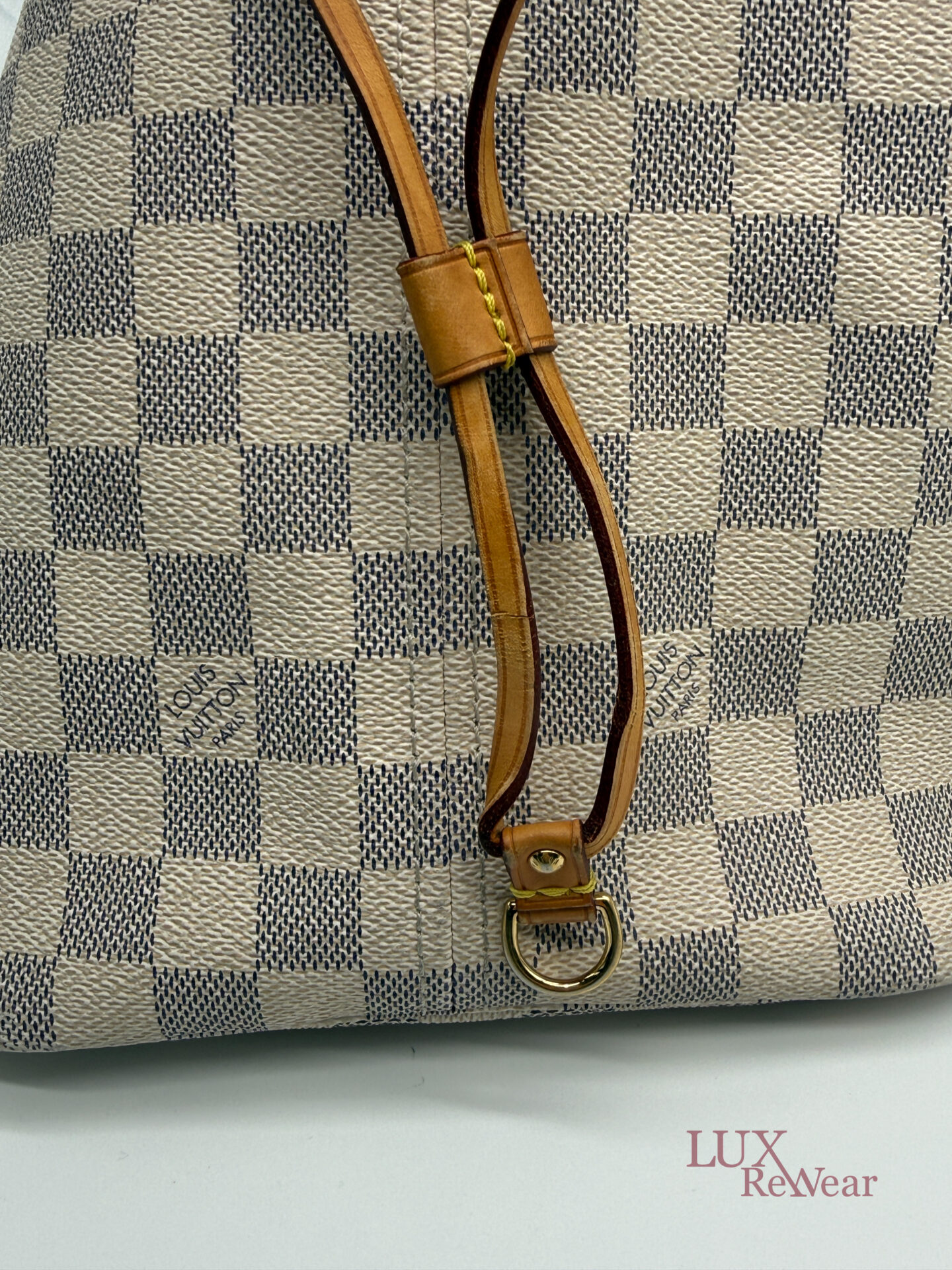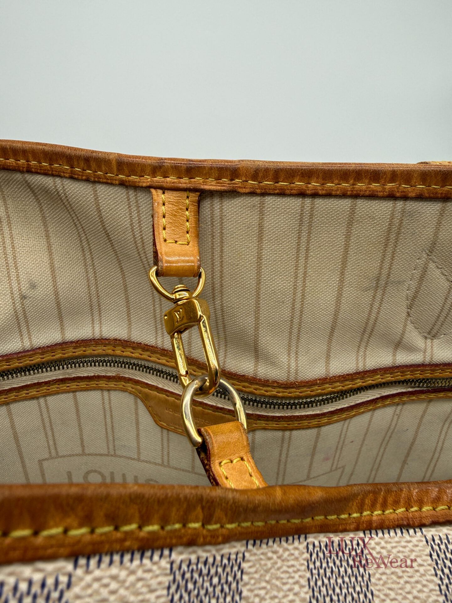 Deze pre-loved Louis Vuitton Neverfull GM is uitgevoerd in het iconische Damier Azur canvas en afgewerkt met natuurlijke vachetta leren details en goudkleurige hardware. Dankzij het ruime formaat is deze tas perfect voor dagelijks gebruik, werk of reizen. De tas beschikt over een groot hoofdcompartiment en een zijvak met rits, ideaal voor het veilig opbergen van kleinere items.