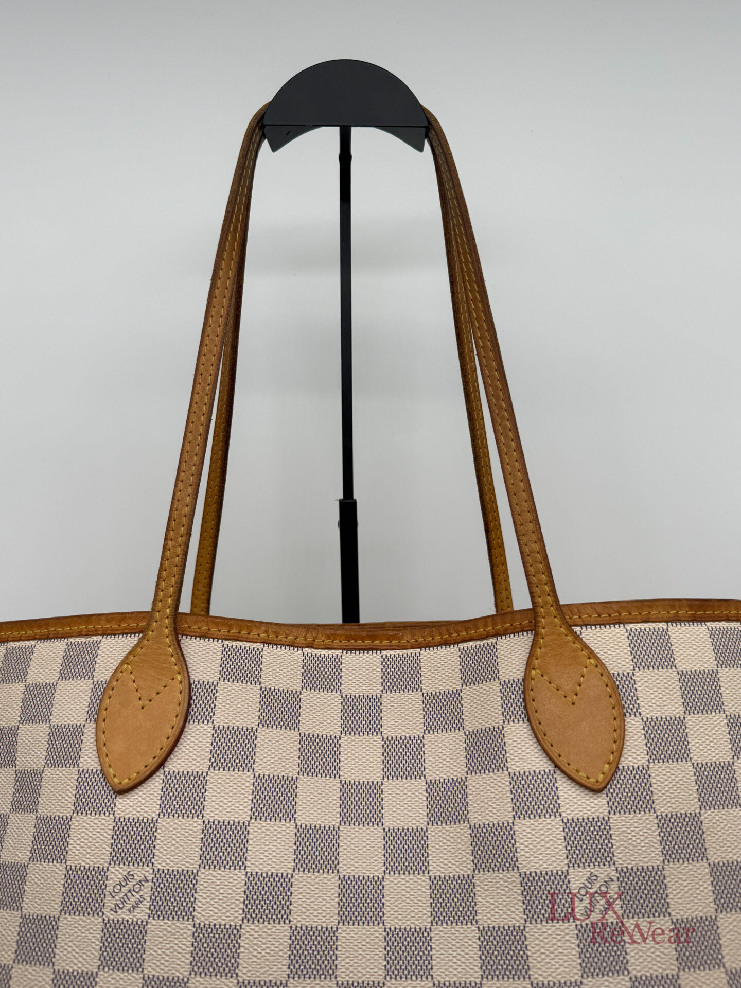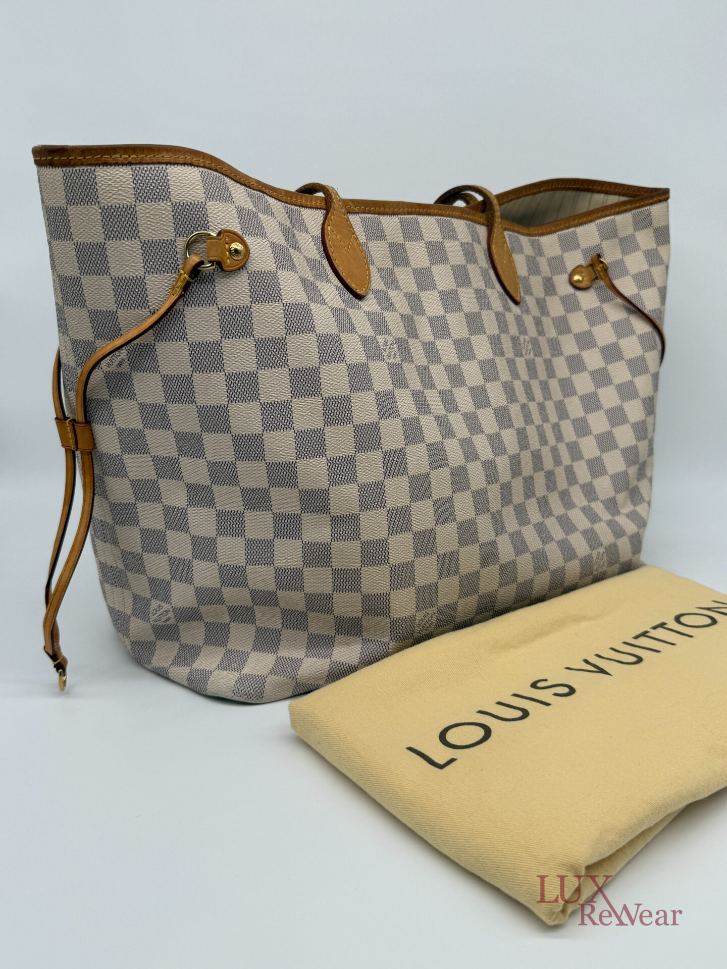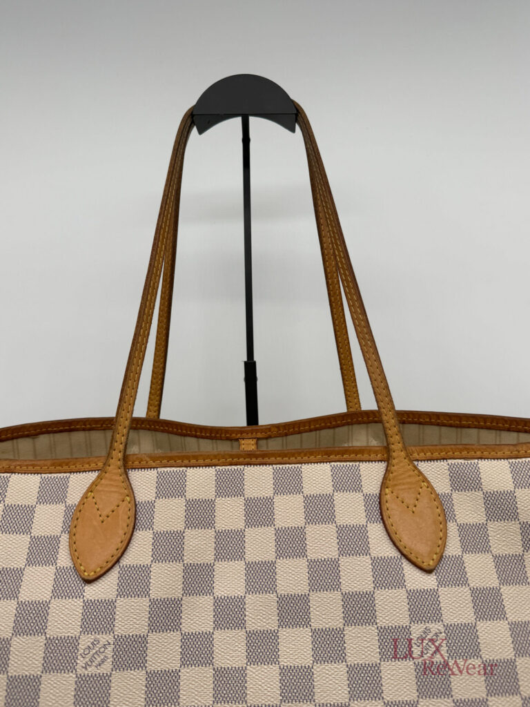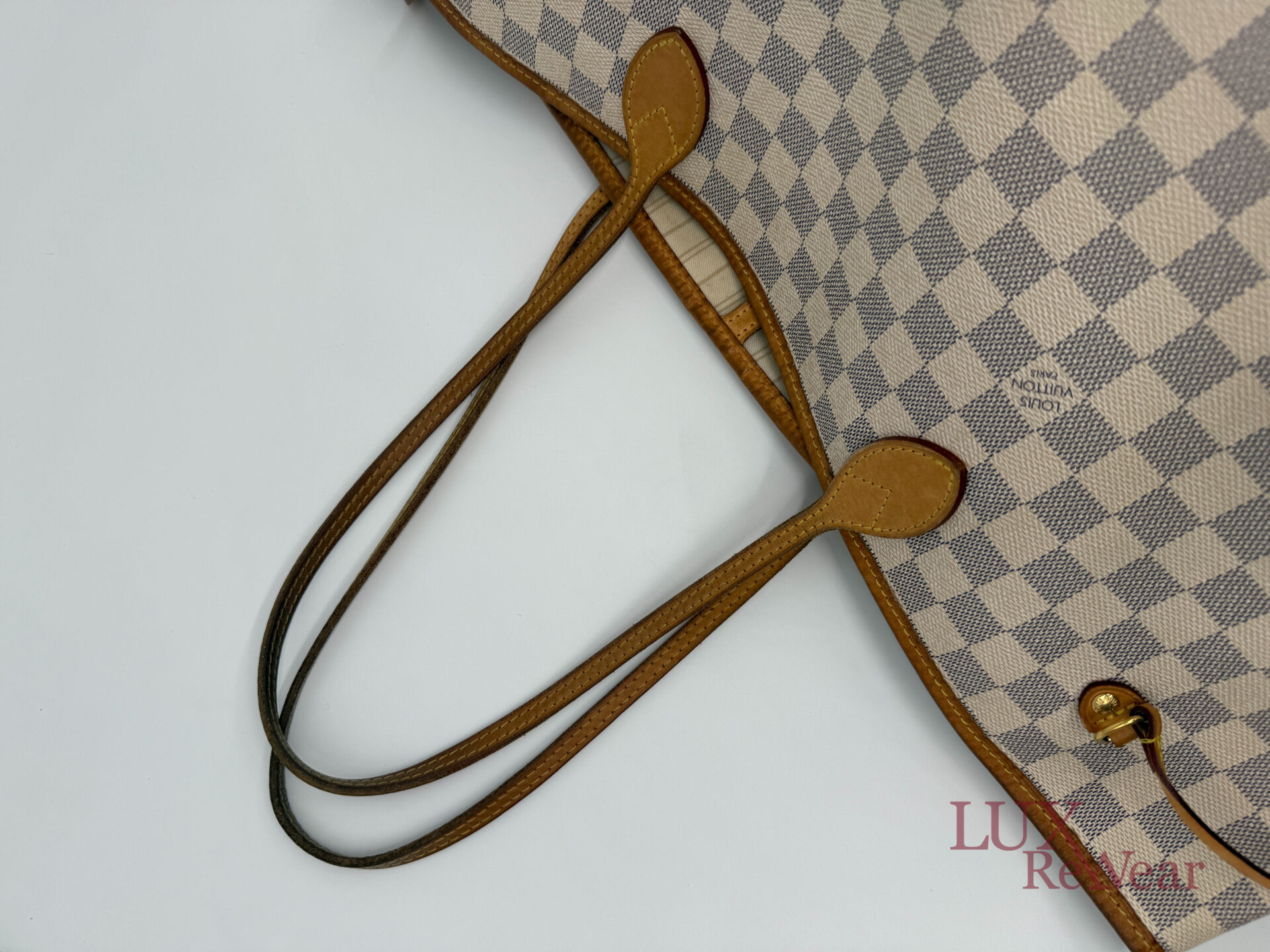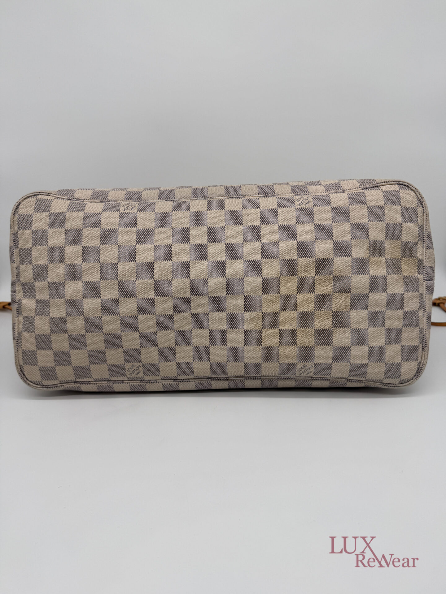 Deze pre-loved Louis Vuitton Neverfull GM is uitgevoerd in het iconische Damier Azur canvas en afgewerkt met natuurlijke vachetta leren details en goudkleurige hardware. Dankzij het ruime formaat is deze tas perfect voor dagelijks gebruik, werk of reizen. De tas beschikt over een groot hoofdcompartiment en een zijvak met rits, ideaal voor het veilig opbergen van kleinere items.