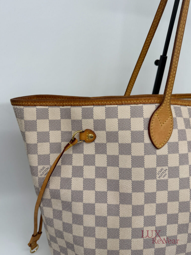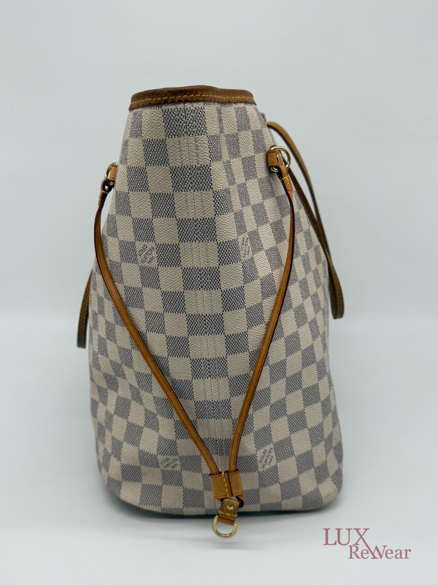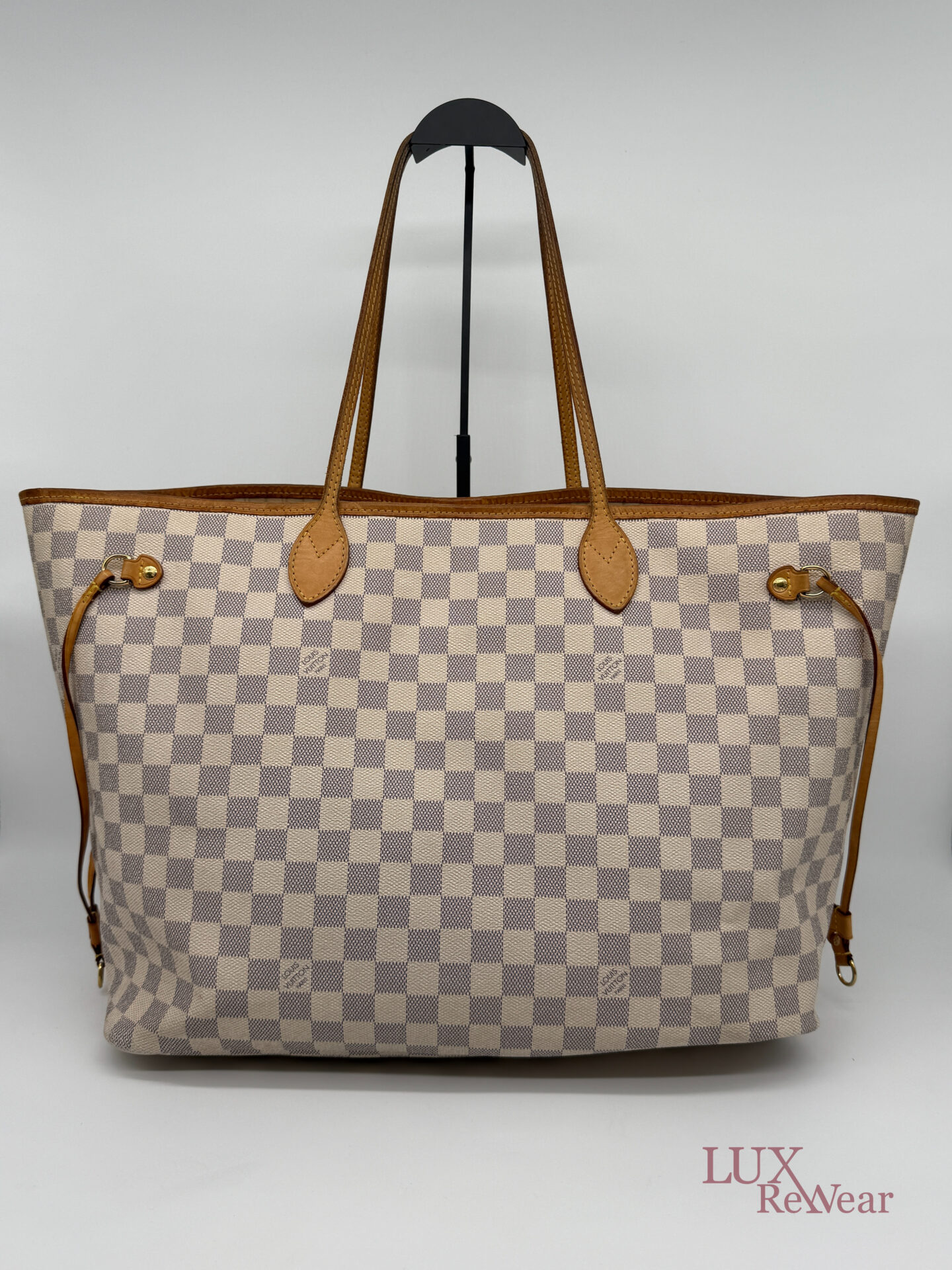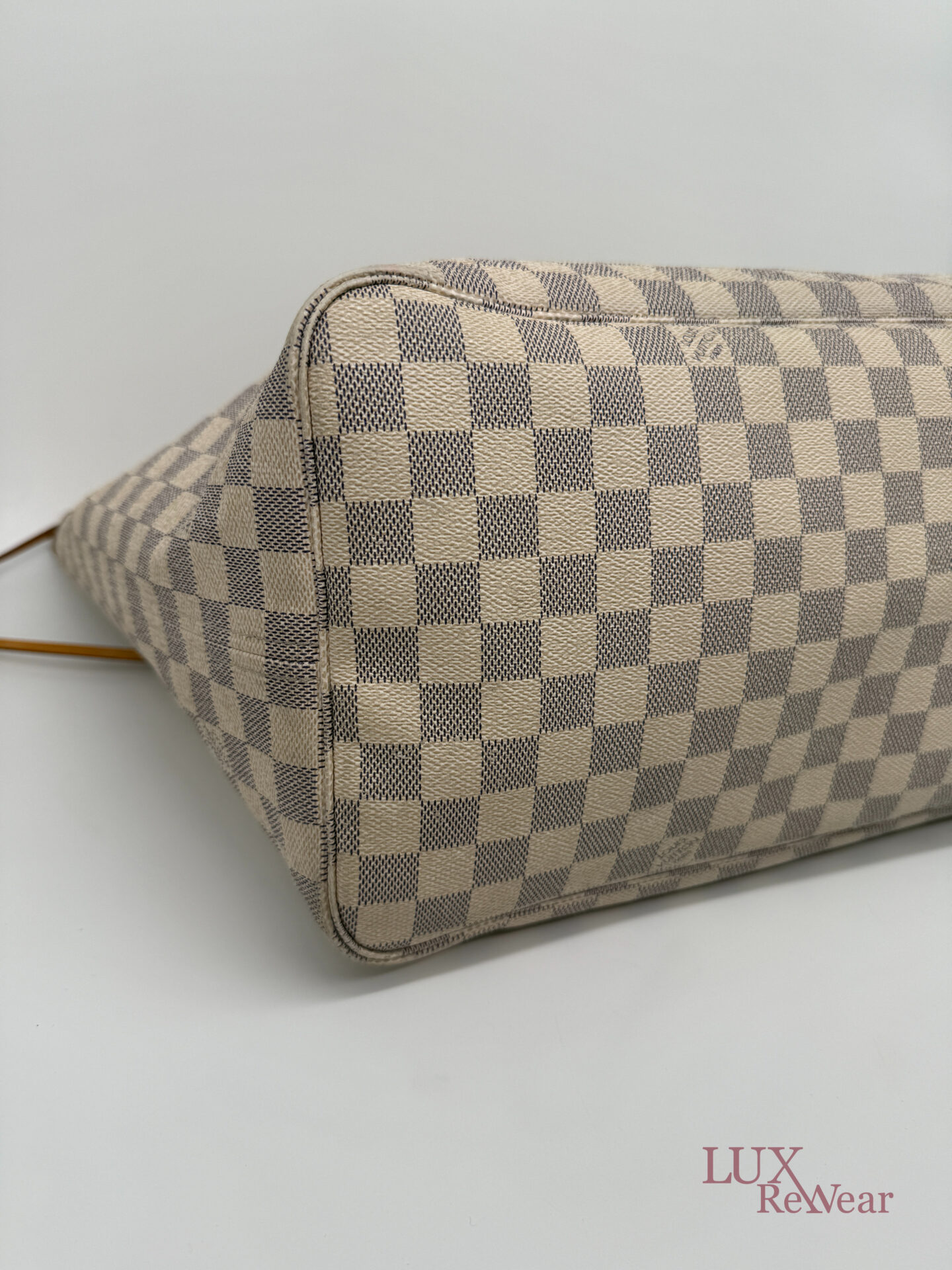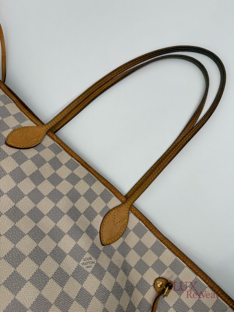Deze pre-loved Louis Vuitton Neverfull GM is uitgevoerd in het iconische Damier Azur canvas en afgewerkt met natuurlijke vachetta leren details en goudkleurige hardware. Dankzij het ruime formaat is deze tas perfect voor dagelijks gebruik, werk of reizen. De tas beschikt over een groot hoofdcompartiment en een zijvak met rits, ideaal voor het veilig opbergen van kleinere items.