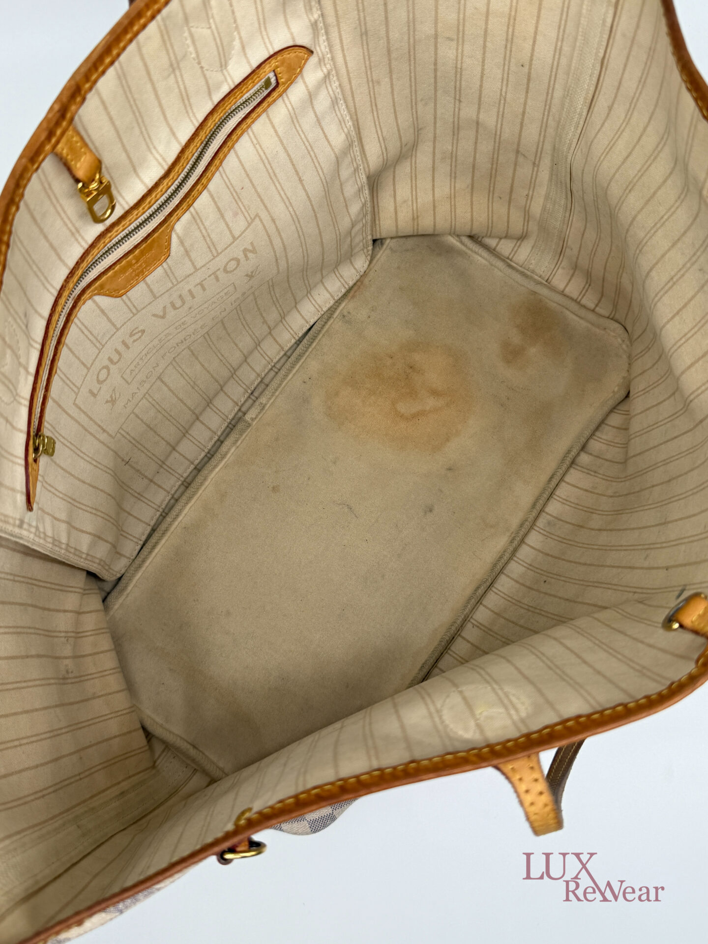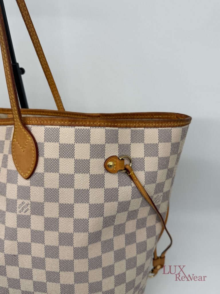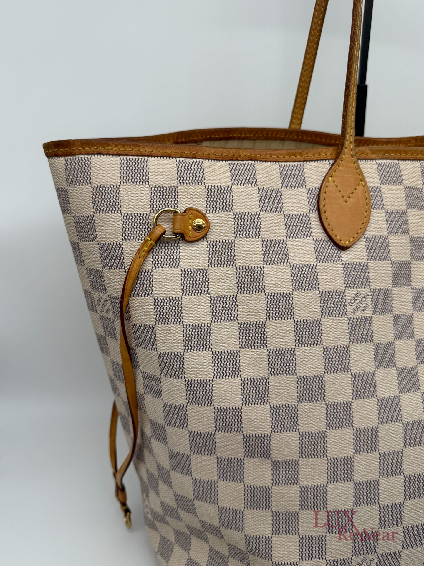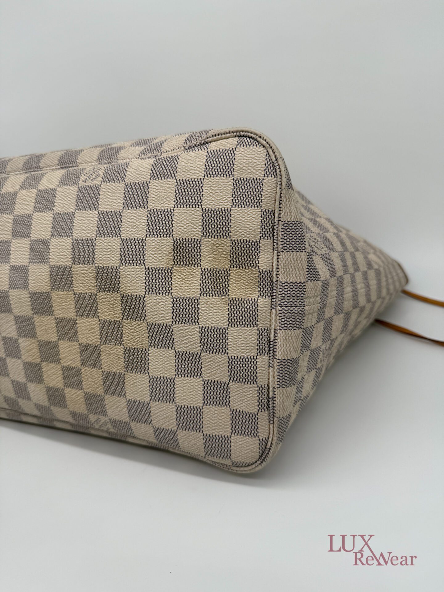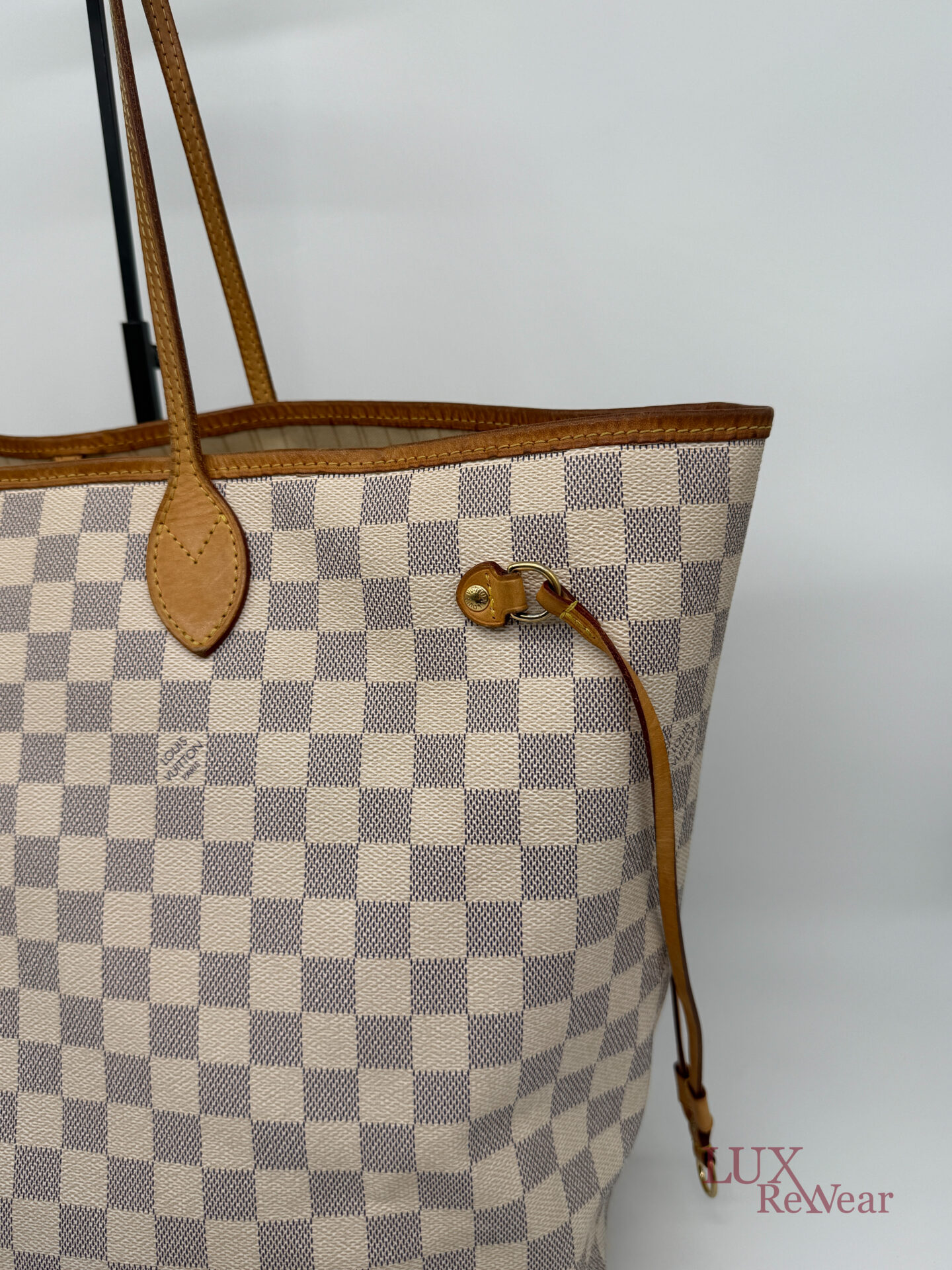Deze pre-loved Louis Vuitton Neverfull GM is uitgevoerd in het iconische Damier Azur canvas en afgewerkt met natuurlijke vachetta leren details en goudkleurige hardware. Dankzij het ruime formaat is deze tas perfect voor dagelijks gebruik, werk of reizen. De tas beschikt over een groot hoofdcompartiment en een zijvak met rits, ideaal voor het veilig opbergen van kleinere items.