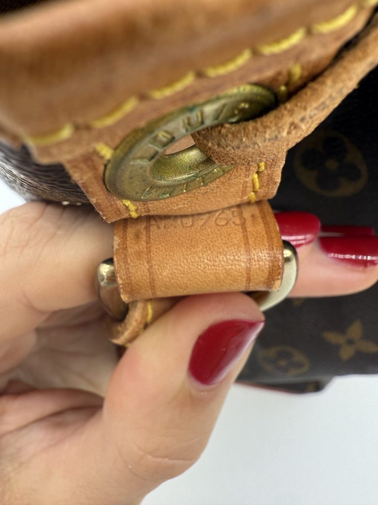 De tas is afgewerkt met vachetta leren details en beschikt over een verstelbare schouderband, waardoor hij comfortabel crossbody of over de schouder gedragen kan worden. De combinatie van het tijdloze design en de praktische indeling maakt de Noé een perfecte tas voor dagelijks gebruik. De data code van deze tas is AR0965, de tas is geproduceerd in Frankrijk in Juni 1995.