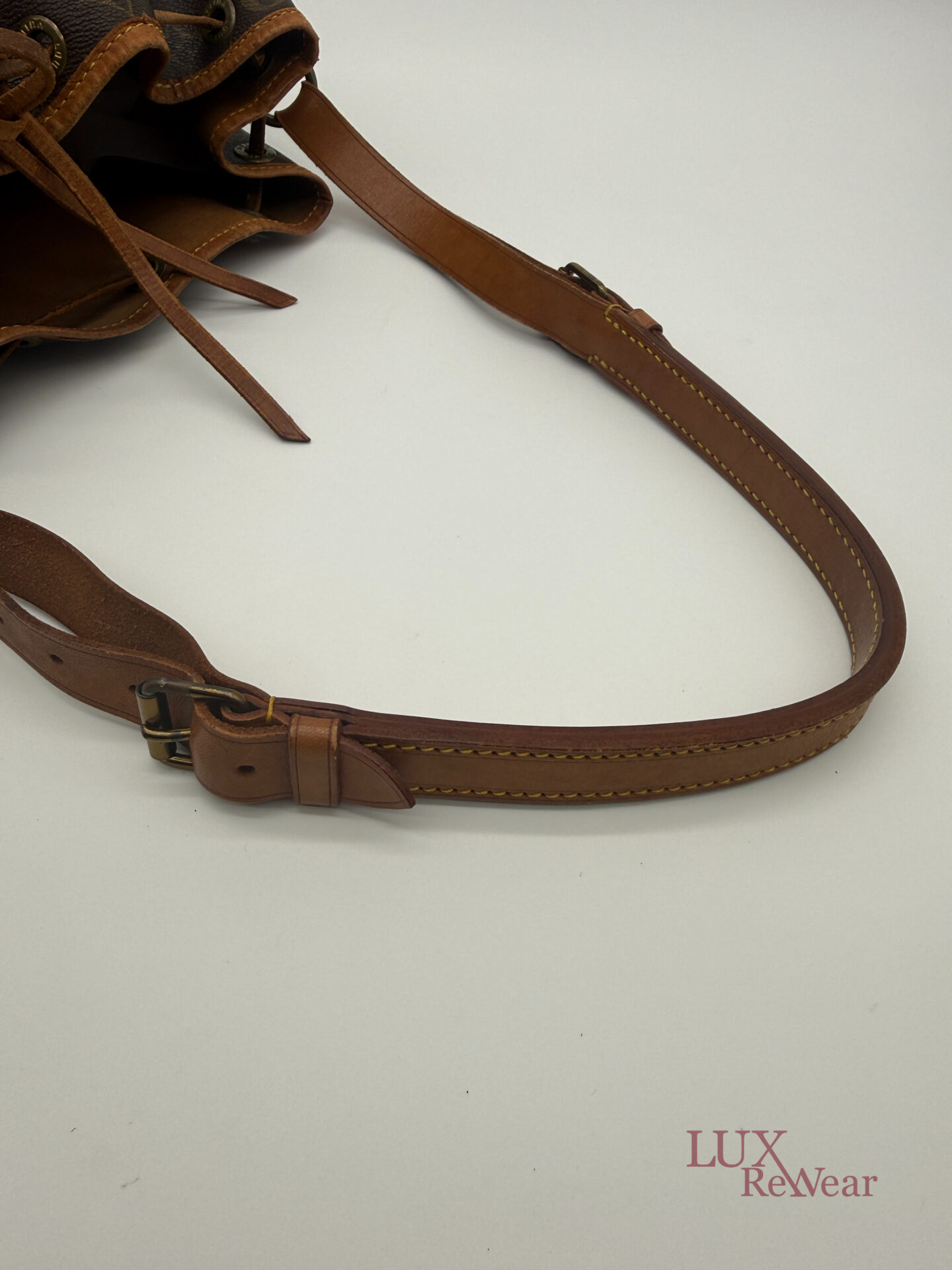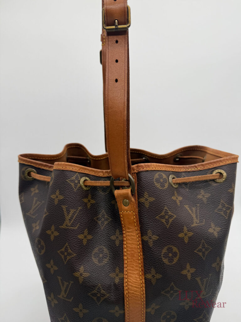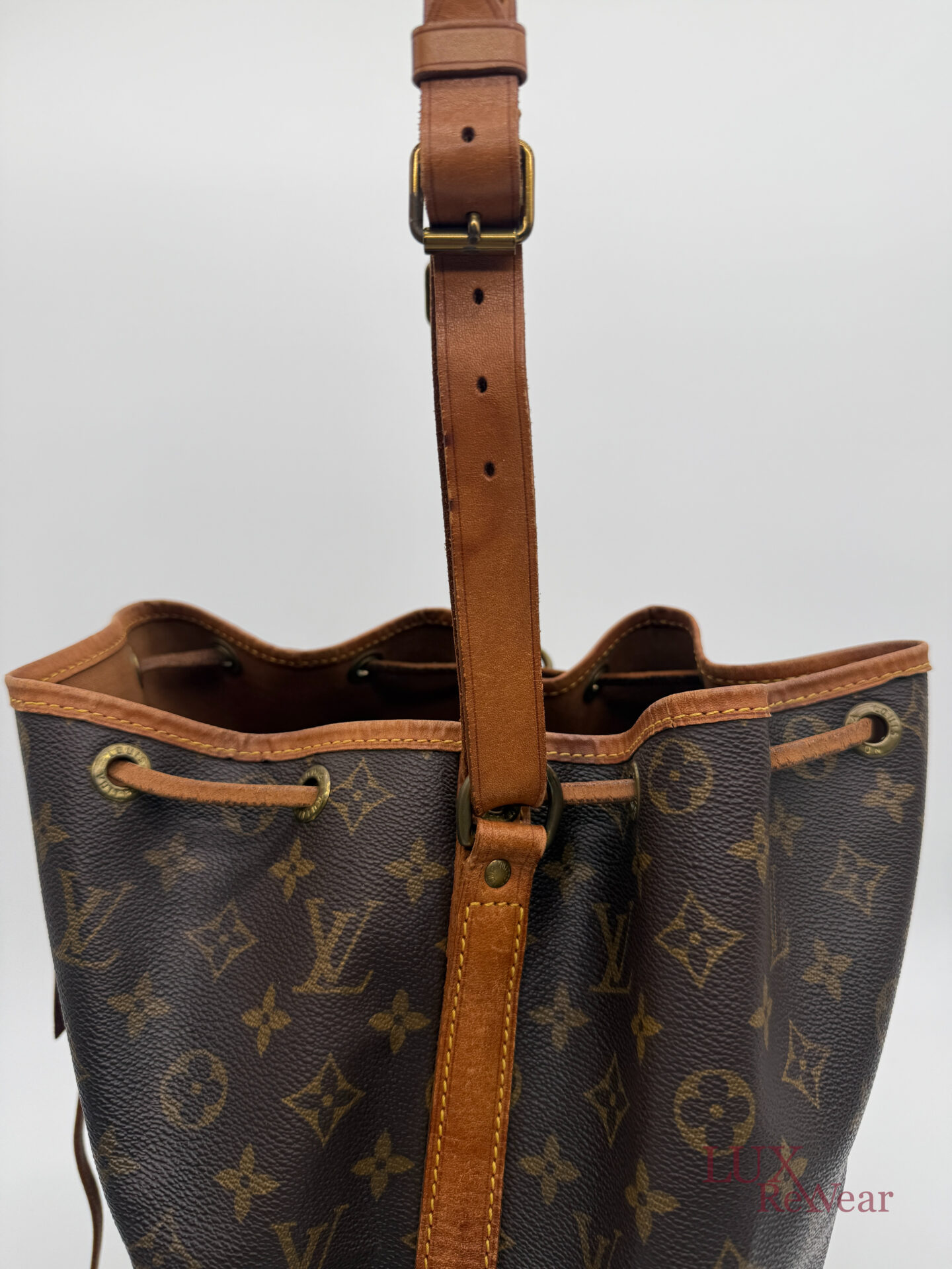 De tas is afgewerkt met vachetta leren details en beschikt over een verstelbare schouderband, waardoor hij comfortabel crossbody of over de schouder gedragen kan worden. De combinatie van het tijdloze design en de praktische indeling maakt de Noé een perfecte tas voor dagelijks gebruik. De data code van deze tas is A2 822, de tas is in Frankrijk geproduceerd in 1982.