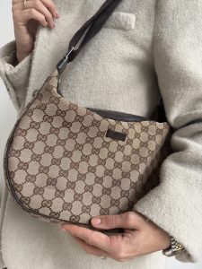 De beroemde GG-print op deze Half Moon-tas werd in de jaren zestig geïntroduceerd als eerbetoon aan Guccio Gucci, de oprichter van het modehuis. Het dubbele G-monogram werd al snel een echt symbool van luxe en erkenning en blijft een van de meest iconische prints in de modegeschiedenis. ????✨