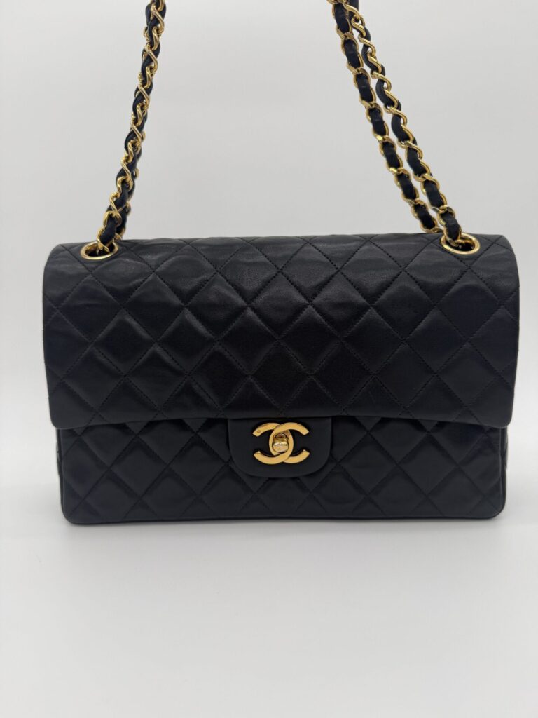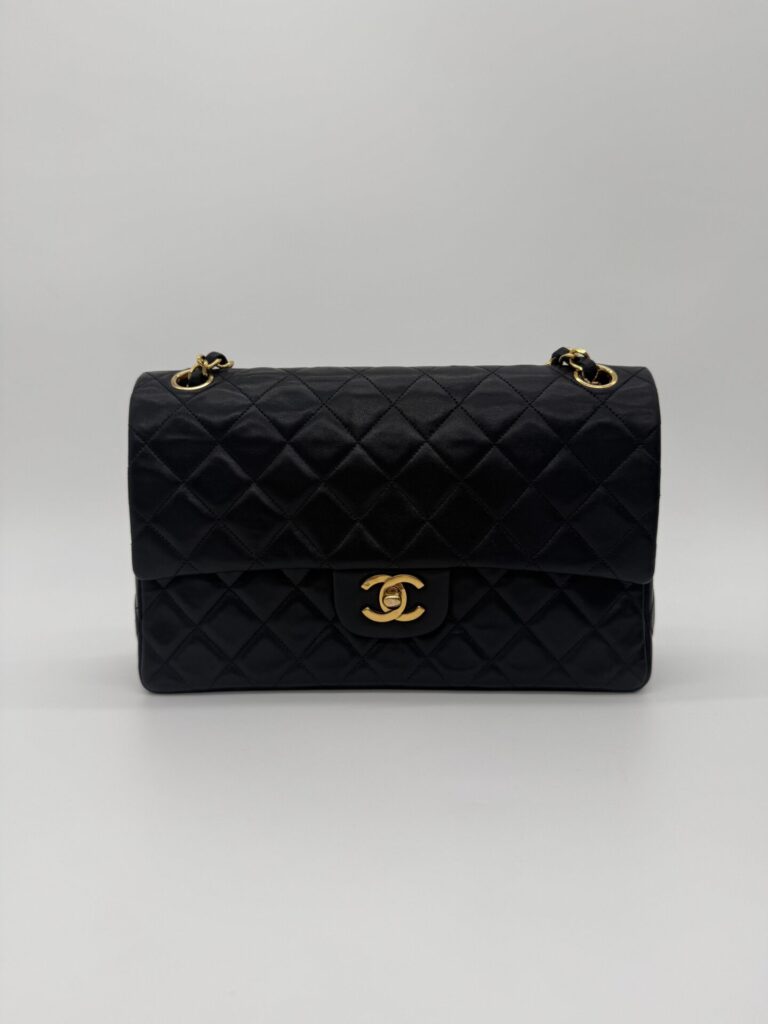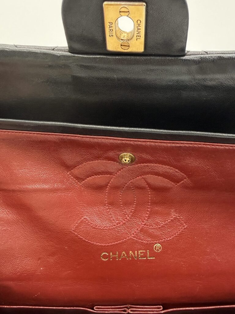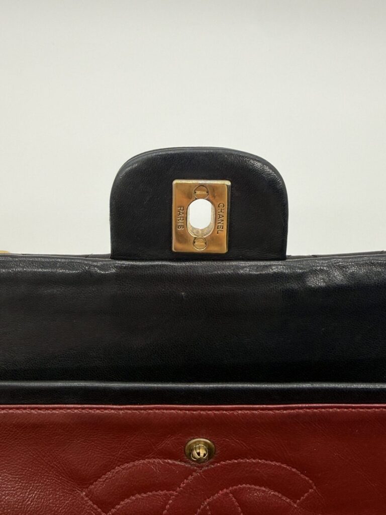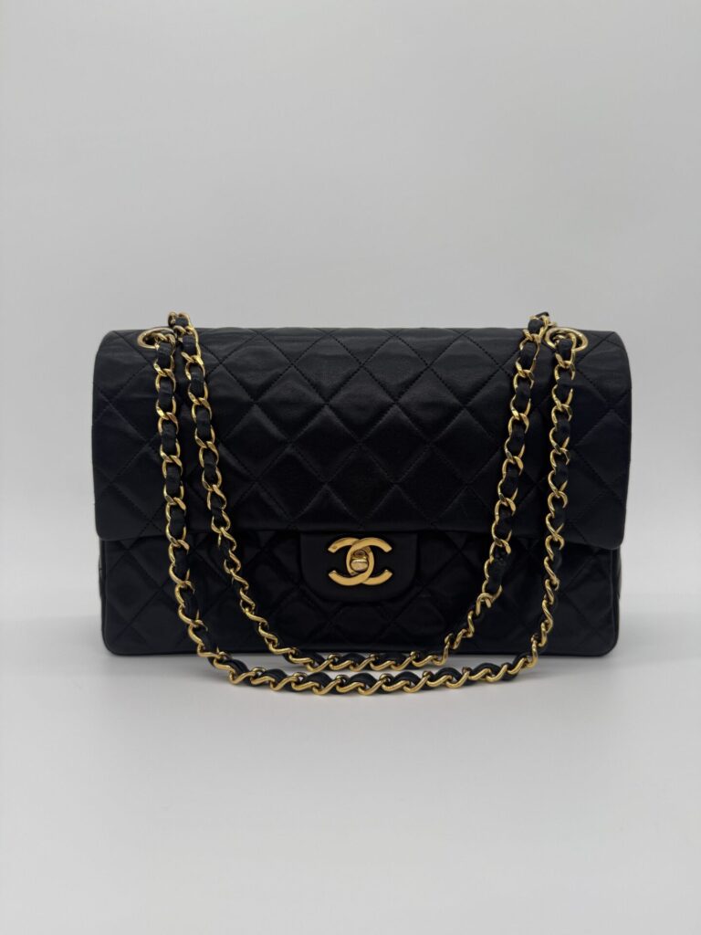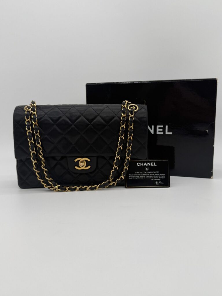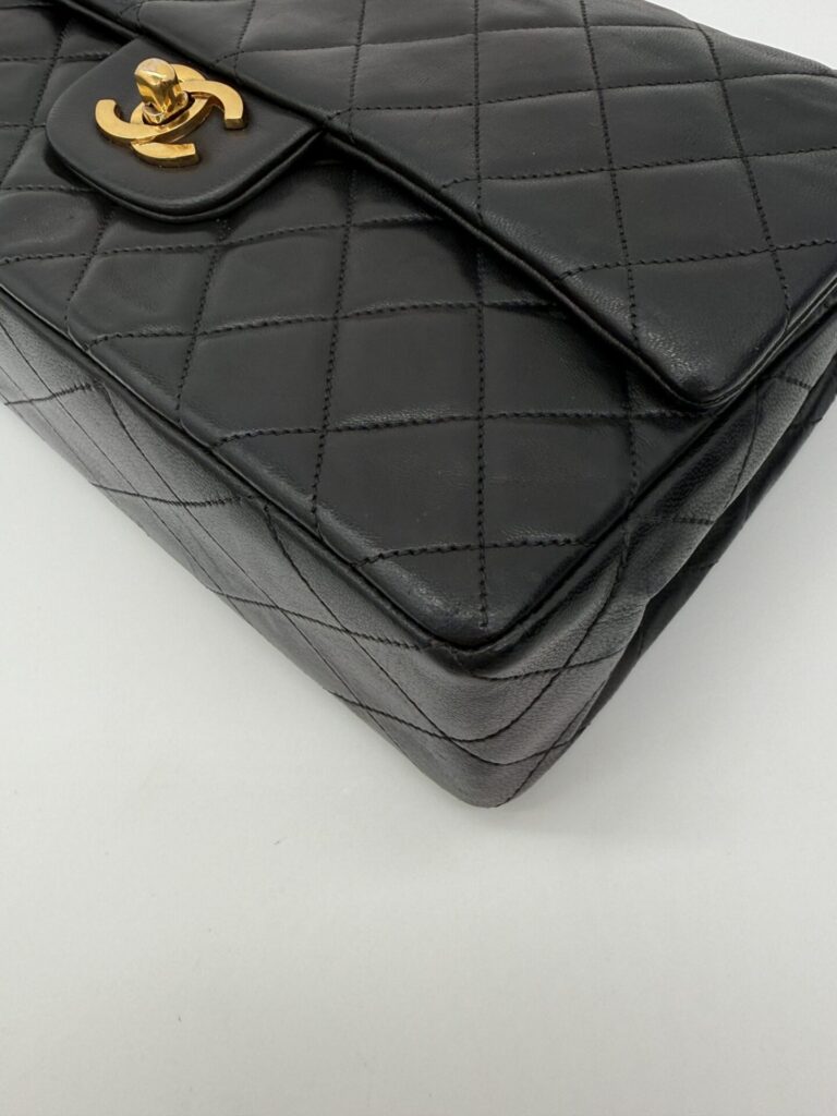 The bag is in excellent condition: the lambskin cushions are still beautifully full, the corners are perfectly preserved, and the shape remains crisp and intact. The 24-carat gold-plated hardware adds an extra touch of luxury and highlights Chanel’s refined craftsmanship.