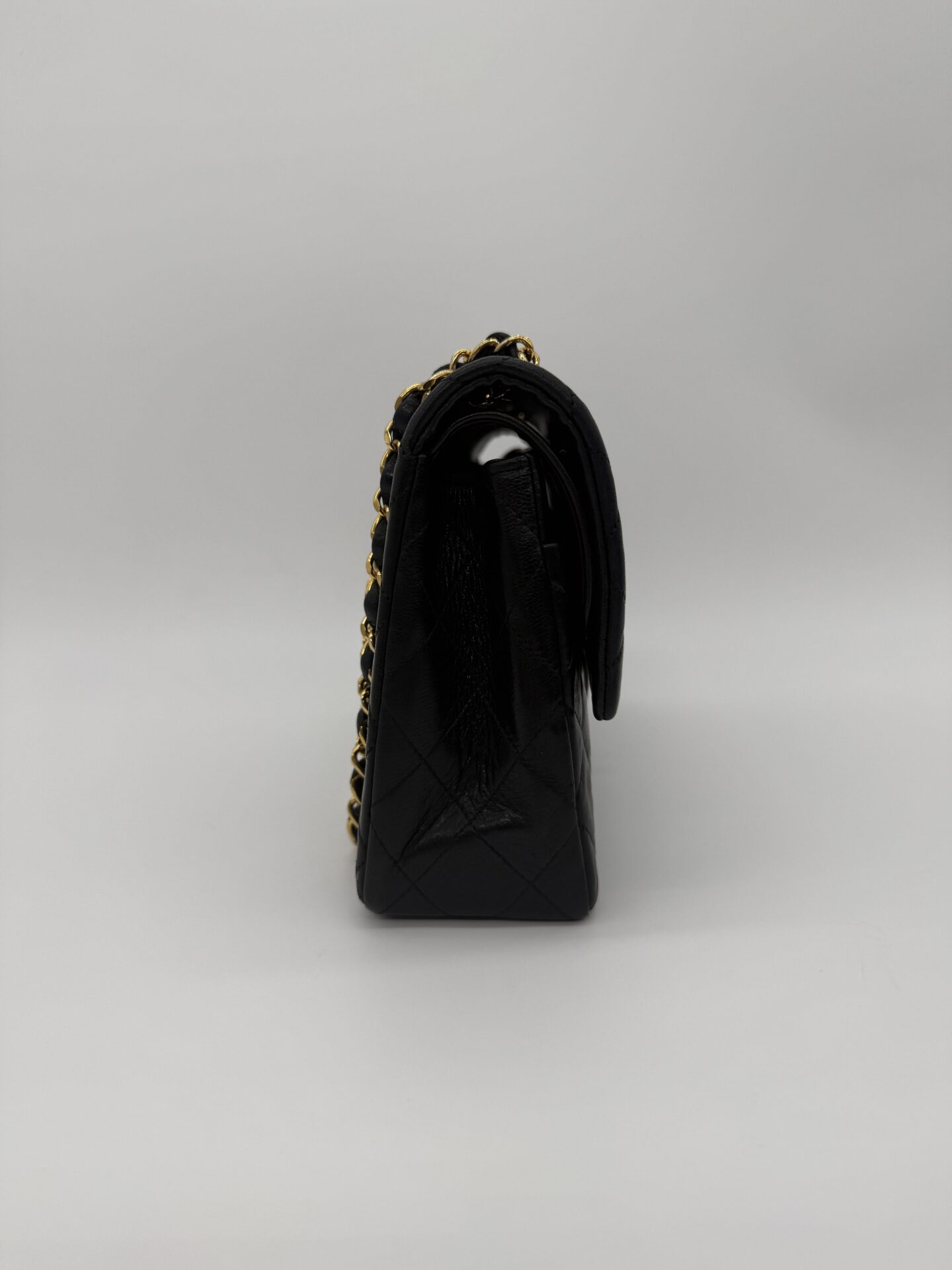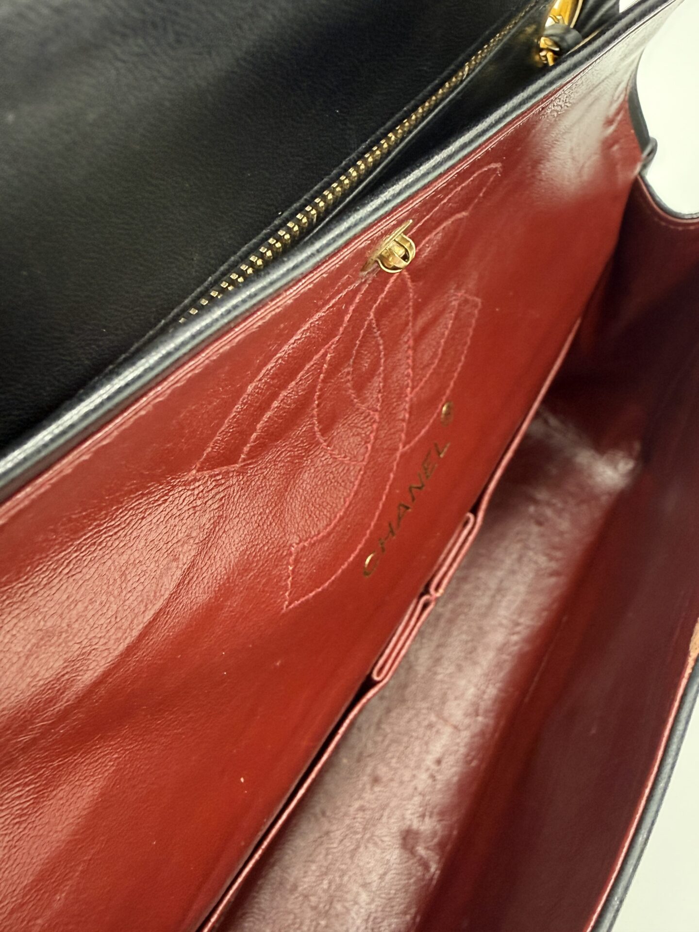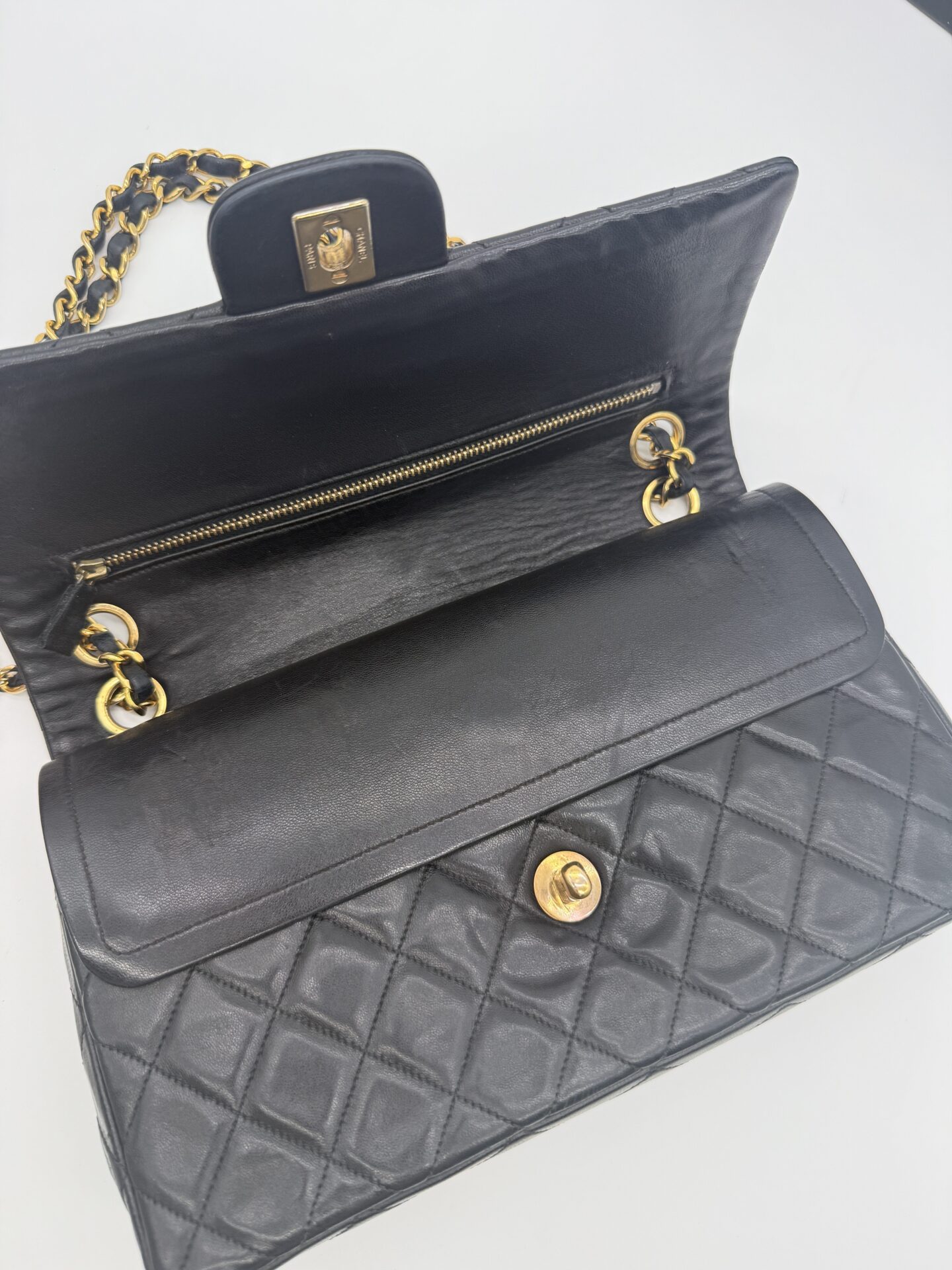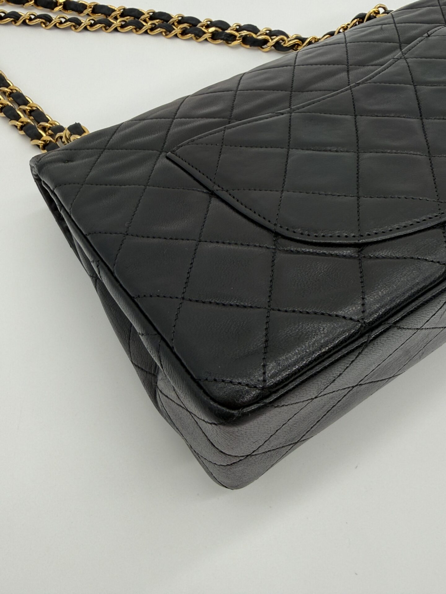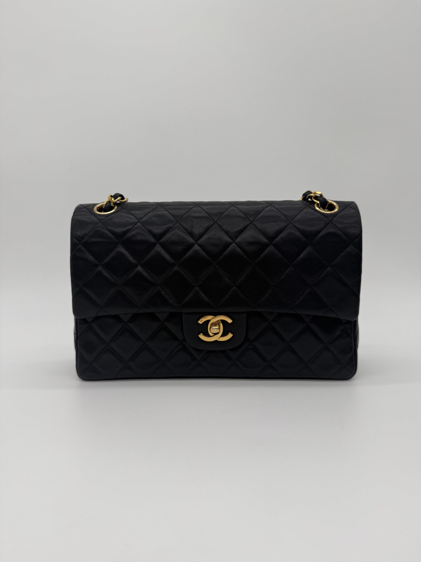 The bag is in excellent condition: the lambskin cushions are still beautifully full, the corners are perfectly preserved, and the shape remains crisp and intact. The 24-carat gold-plated hardware adds an extra touch of luxury and highlights Chanel’s refined craftsmanship.