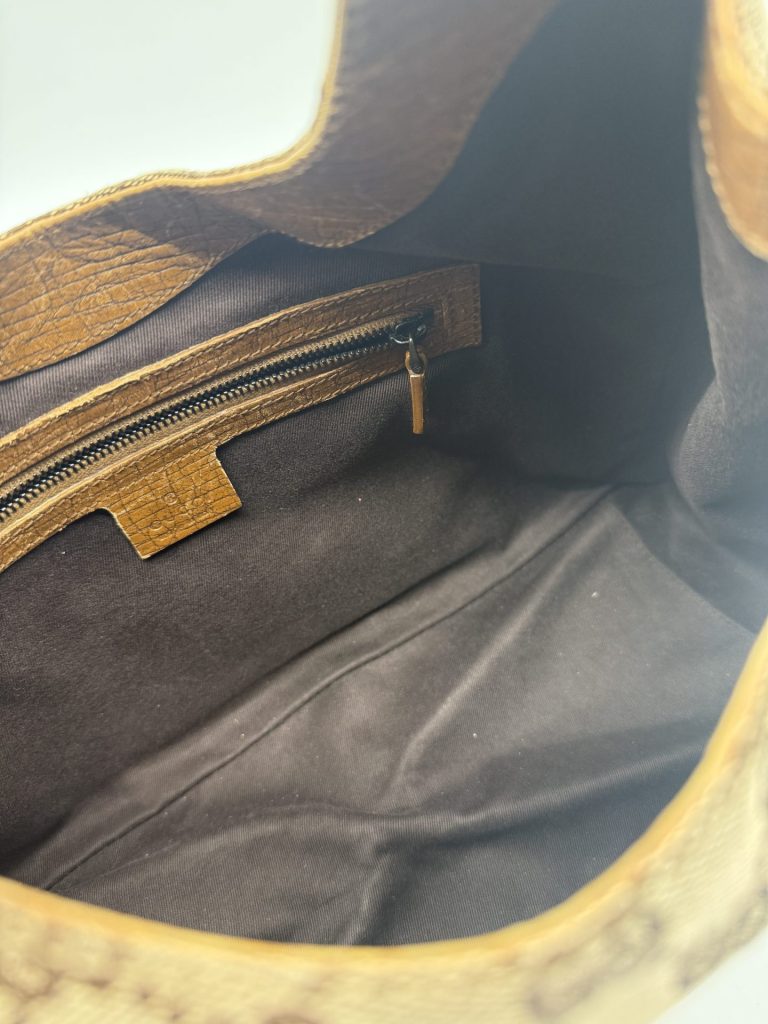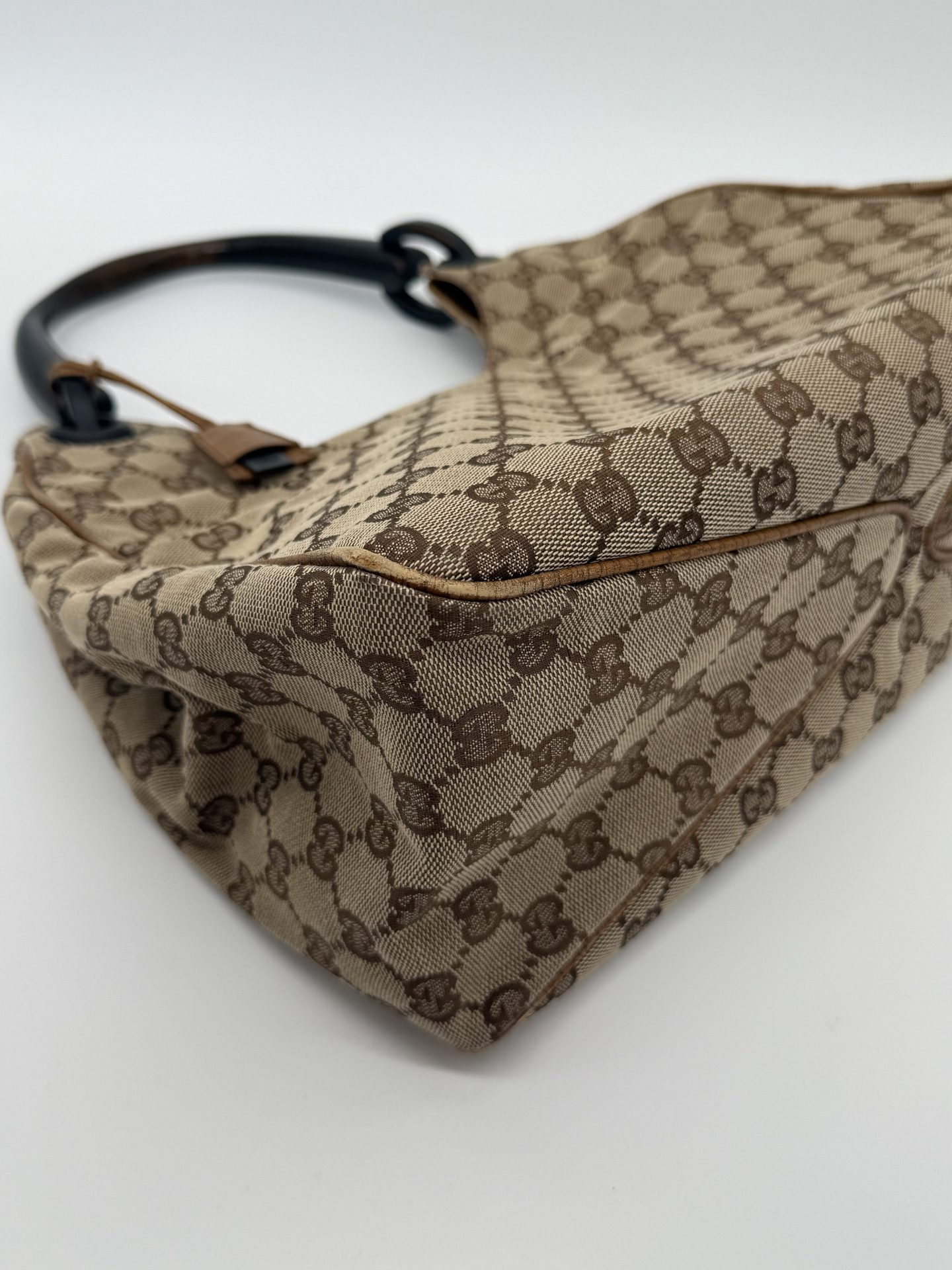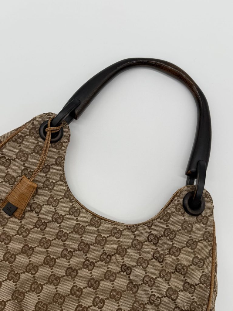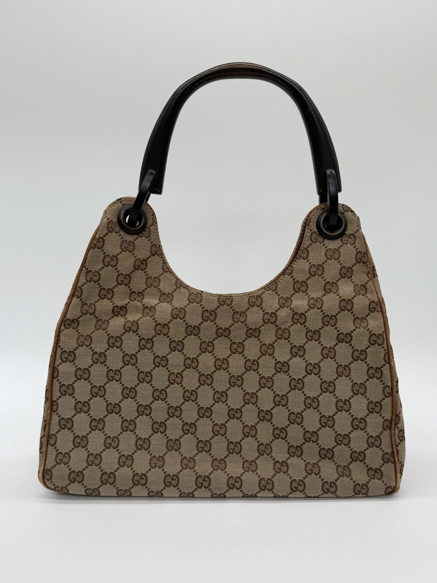 This pre-loved Gucci GG Canvas Hobo Bag is a stylish and timeless piece, made in Italy from the iconic beige GG canvas. The classic hobo design is finished with signature bamboo details, giving it a unique vintage look. Lightweight and spacious, it’s perfect for everyday use, a true must-have for vintage designer lovers.