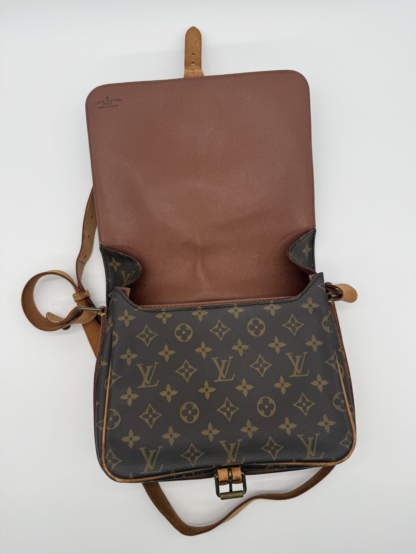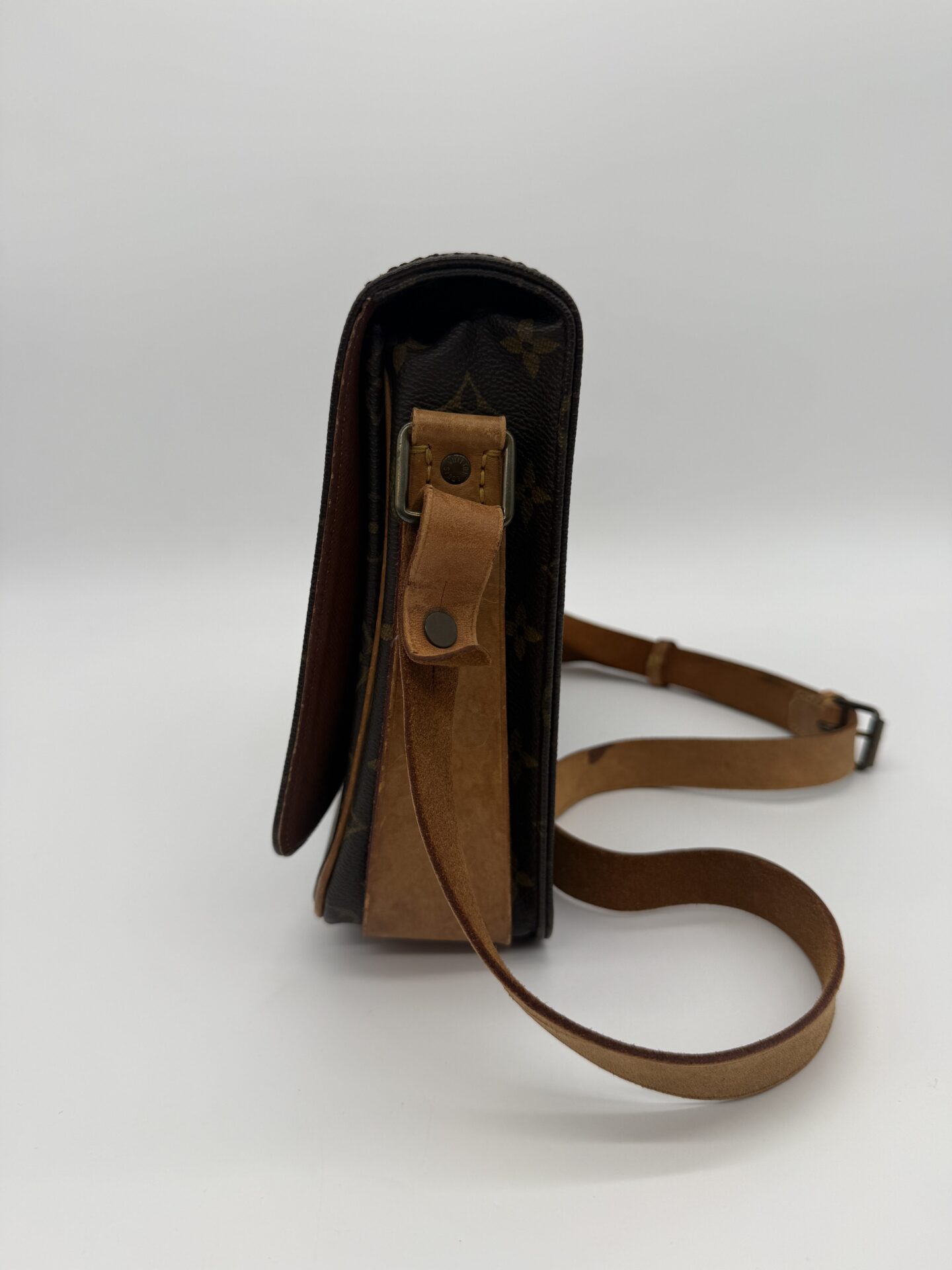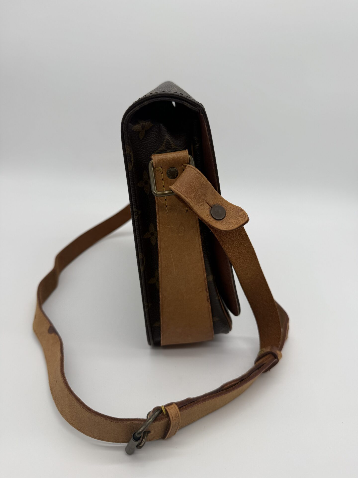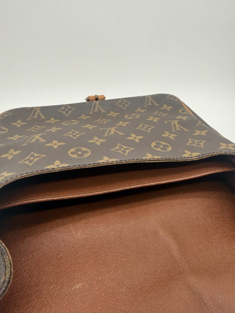 The Louis Vuitton Cartouchière bag is the perfect crossbody bag for everyone! It features the LV signature Monogram canvas with vachetta leather and gold-tone hardware. The bag has a front flap with a buckle closure, and an adjustable leather shoulder strap. The Cartouchière was first introduced in the 1970s and has since become a popular collector’s item. The data code of this item is 882SL; this item is produced in France in 1988.