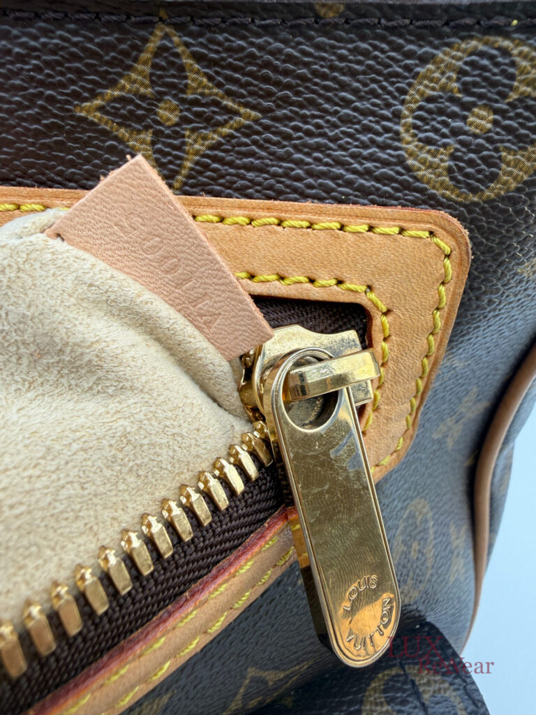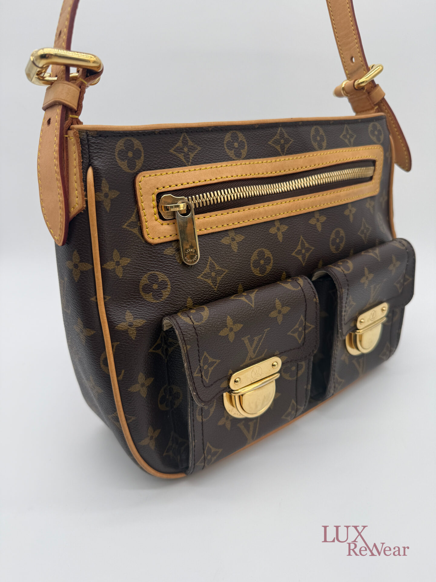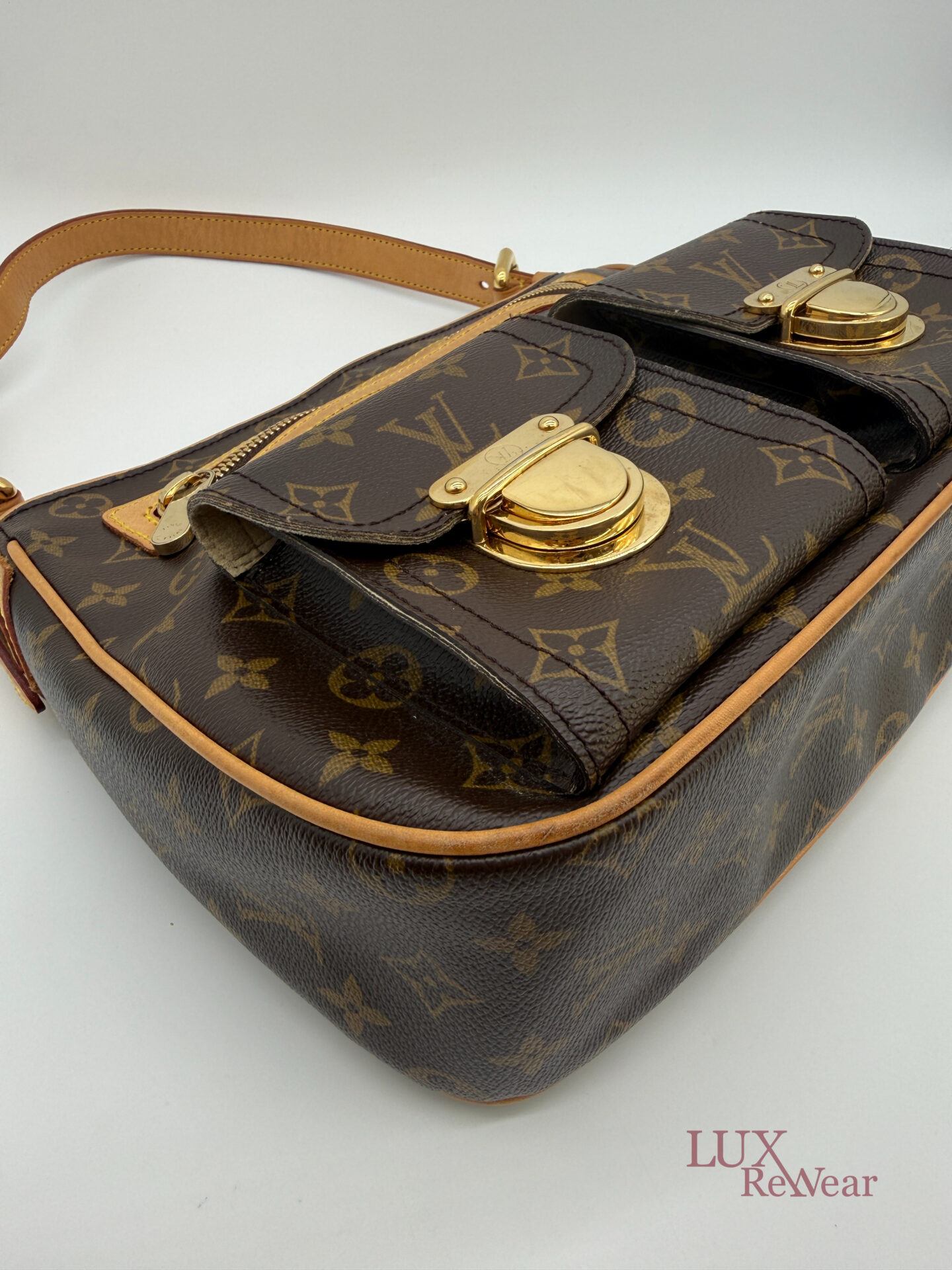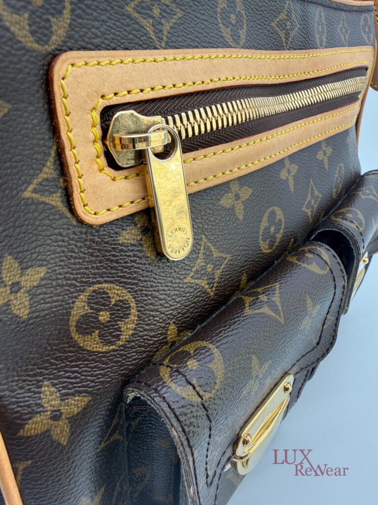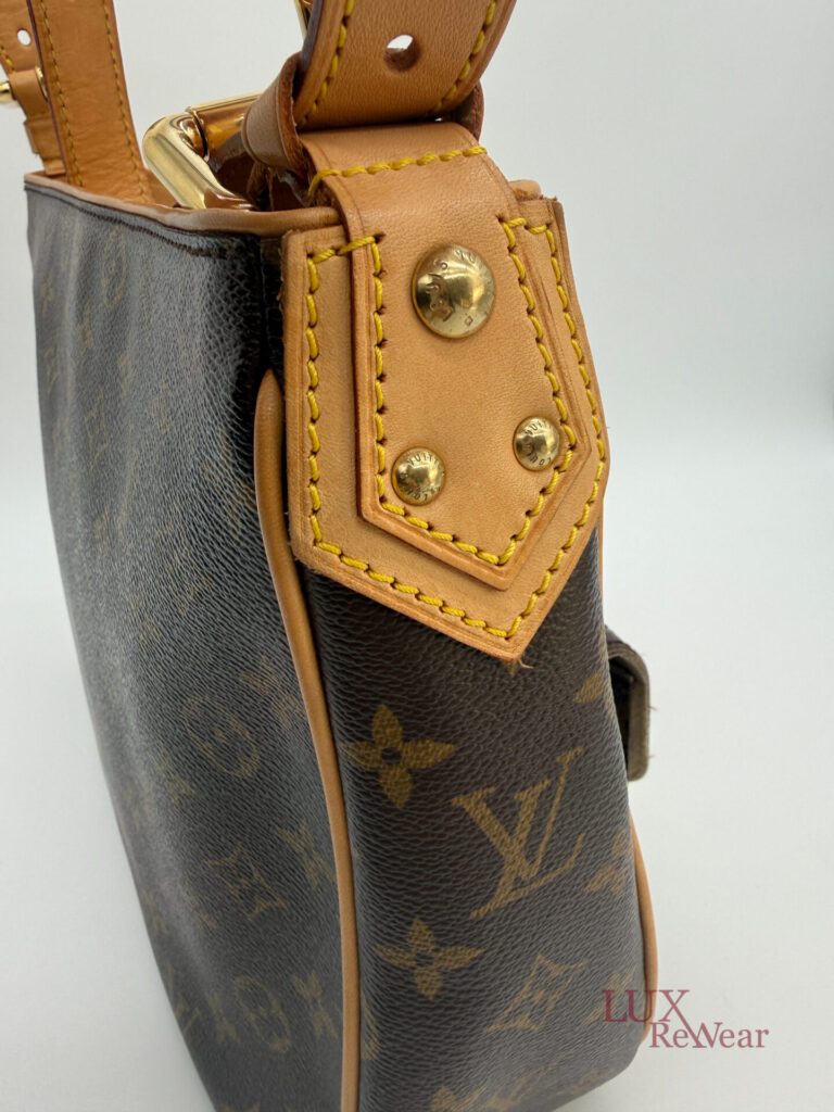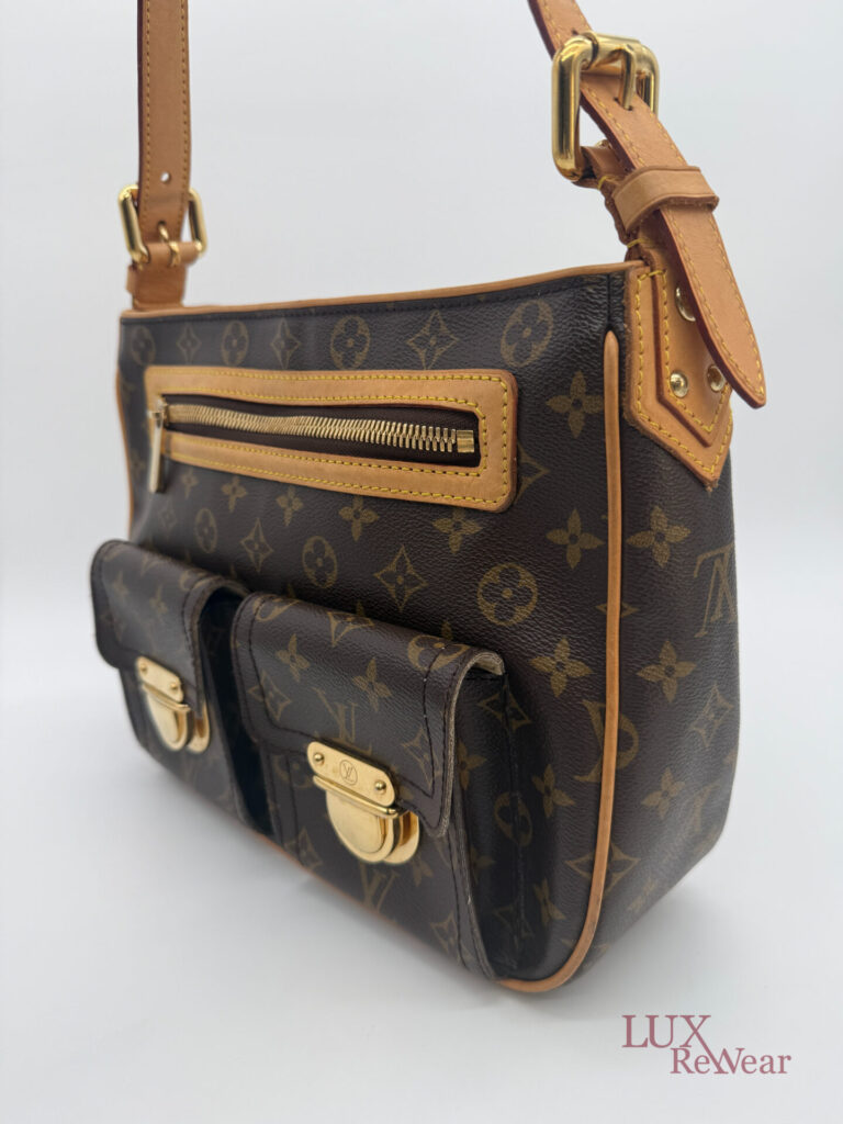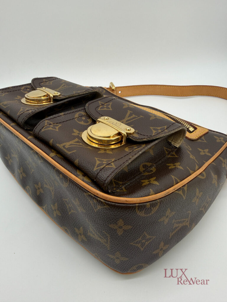 This pre-loved Louis Vuitton Hudson GM is crafted from iconic Monogram canvas and finished with gold-tone hardware and vachetta leather details. The bag comes with both a short vachetta leather strap and a long adjustable strap, allowing versatile wear. The spacious main compartment is practically organized and features multiple pockets on both the interior and front side, perfect for keeping your essentials organized for everyday use. The date code of this item is VI1005 (made in France in October 2005).