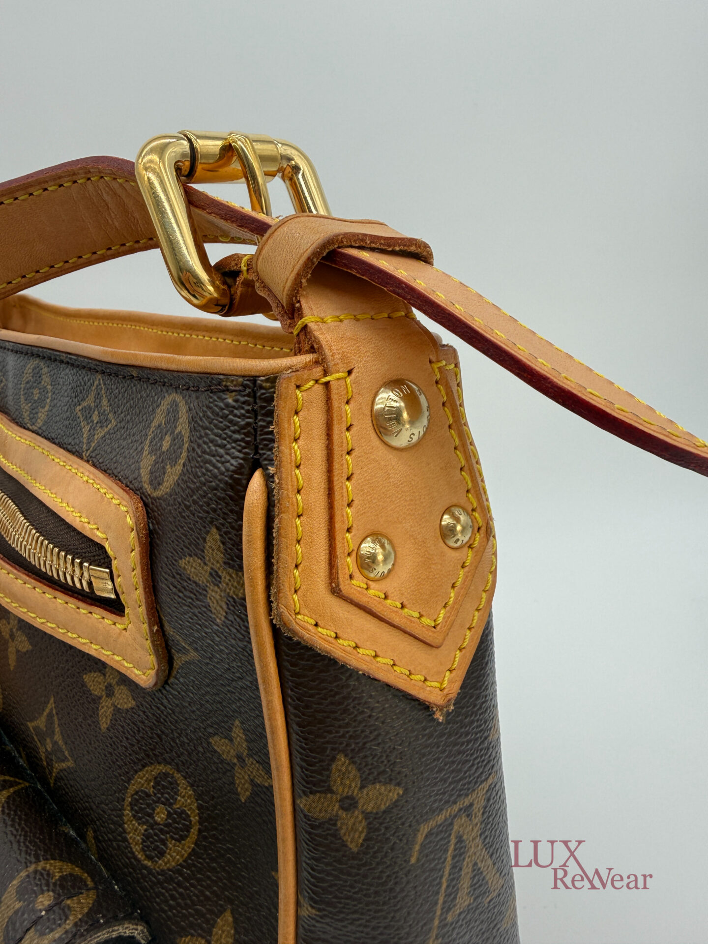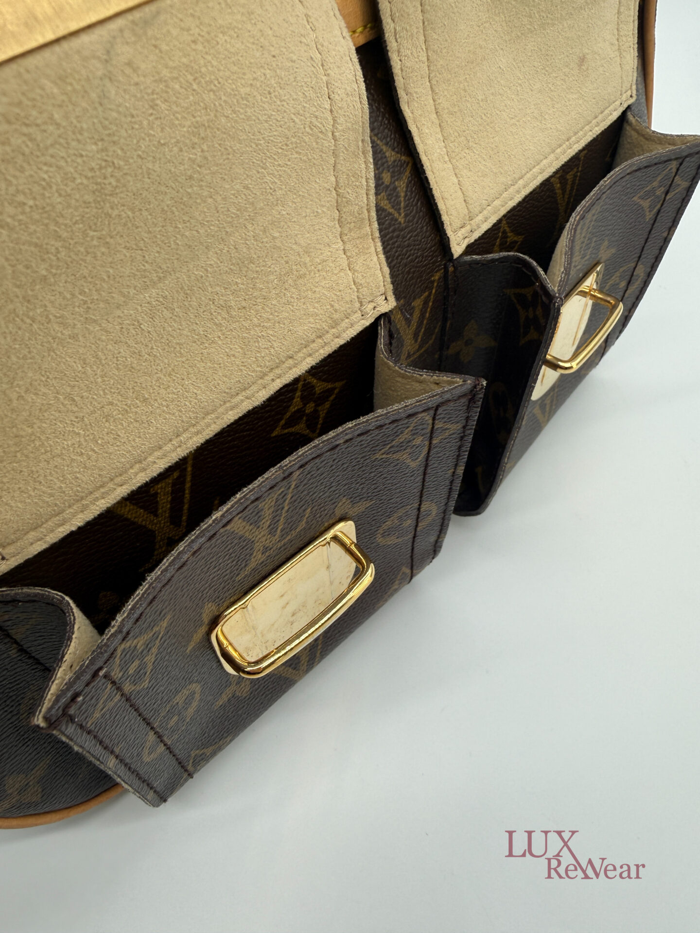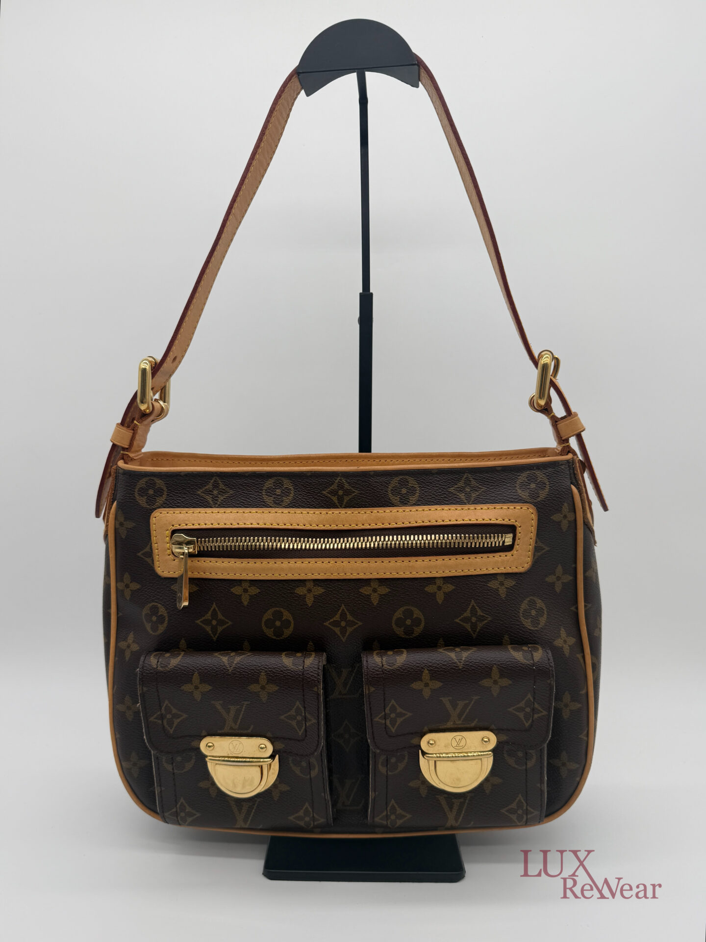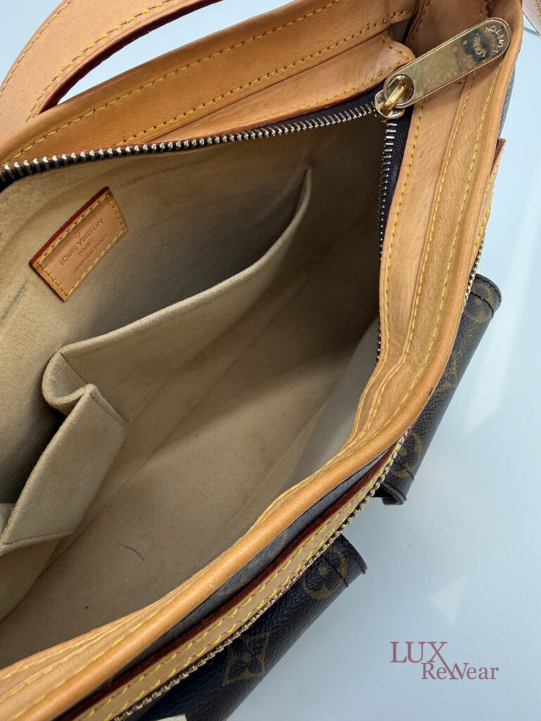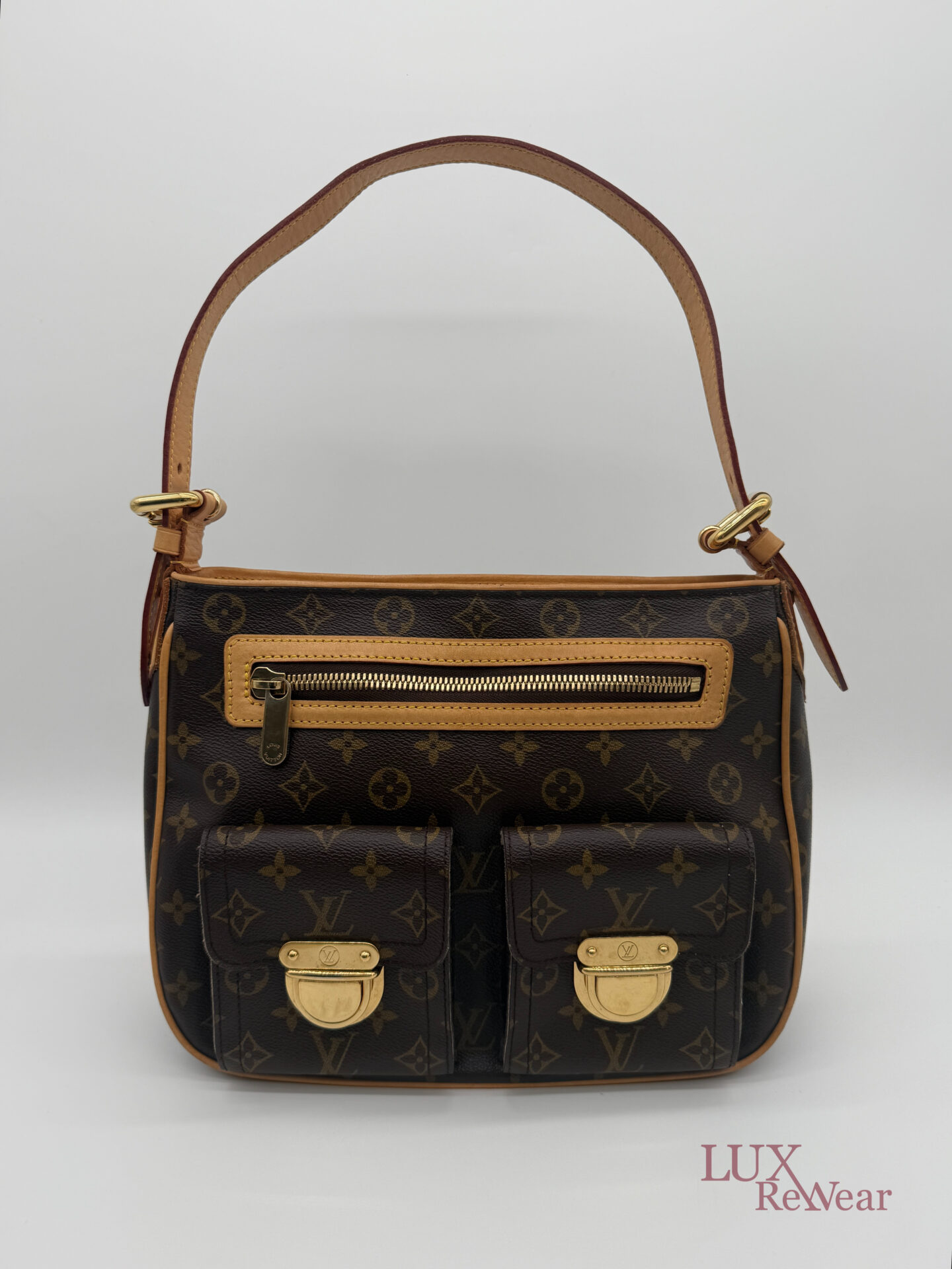 This pre-loved Louis Vuitton Hudson GM is crafted from iconic Monogram canvas and finished with gold-tone hardware and vachetta leather details. The bag comes with both a short vachetta leather strap and a long adjustable strap, allowing versatile wear. The spacious main compartment is practically organized and features multiple pockets on both the interior and front side, perfect for keeping your essentials organized for everyday use. The date code of this item is VI1005 (made in France in October 2005).