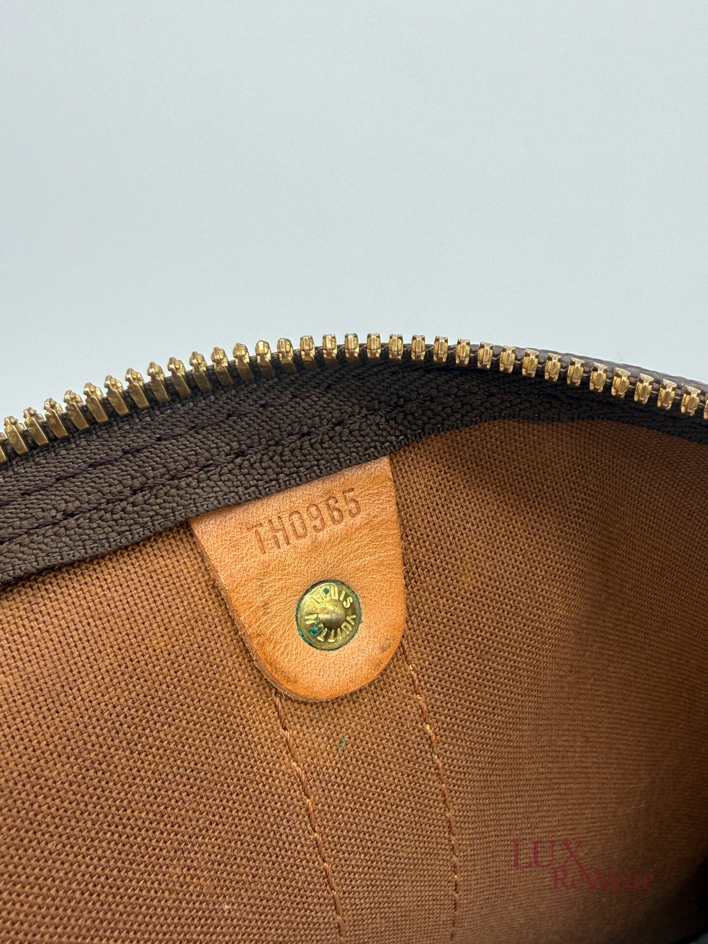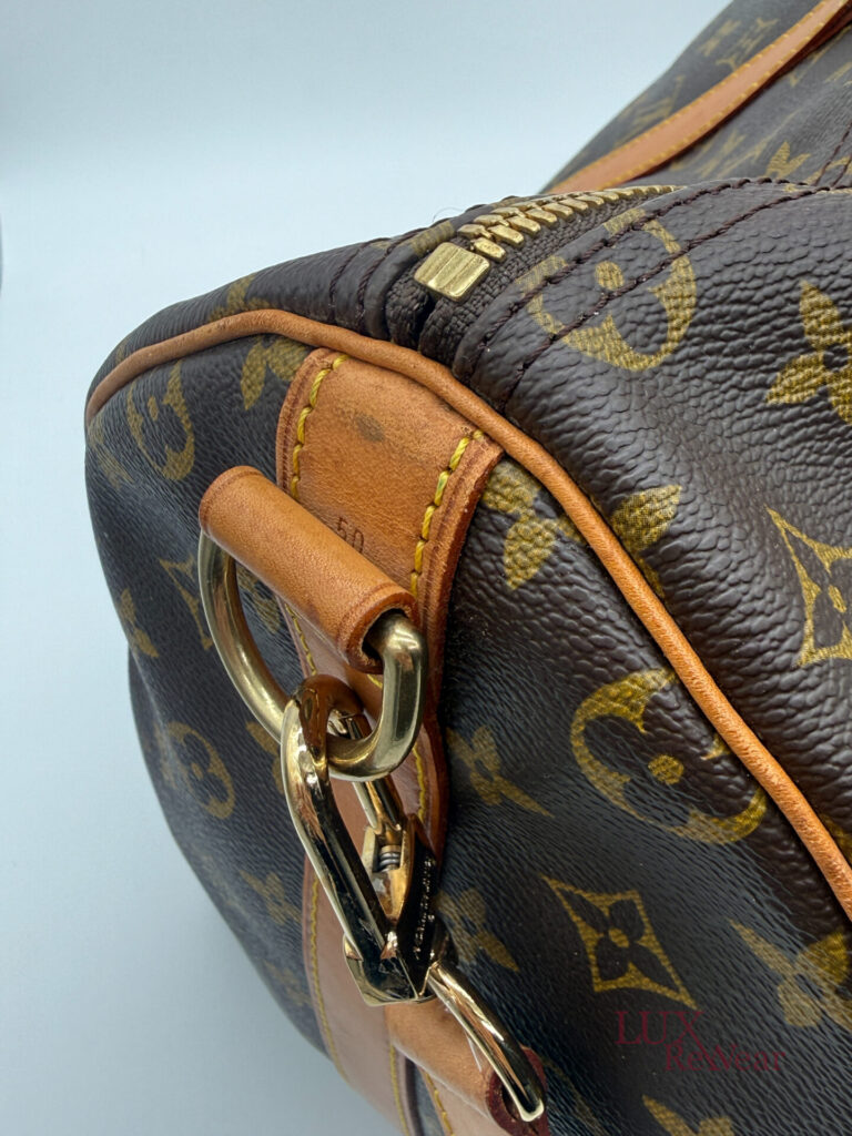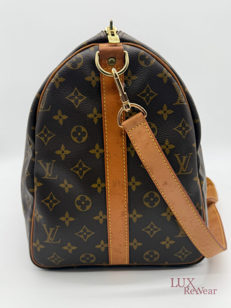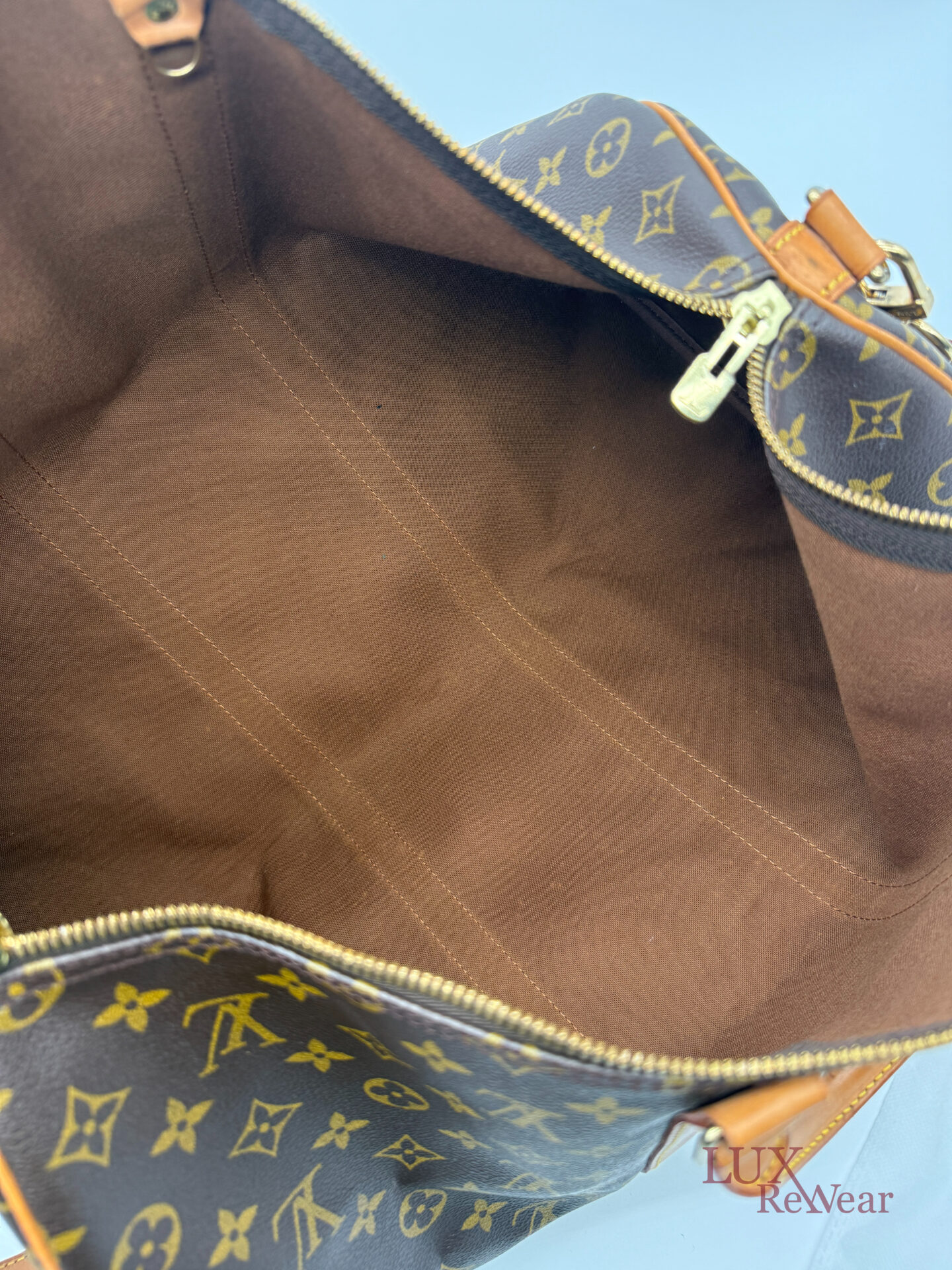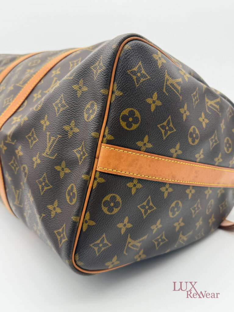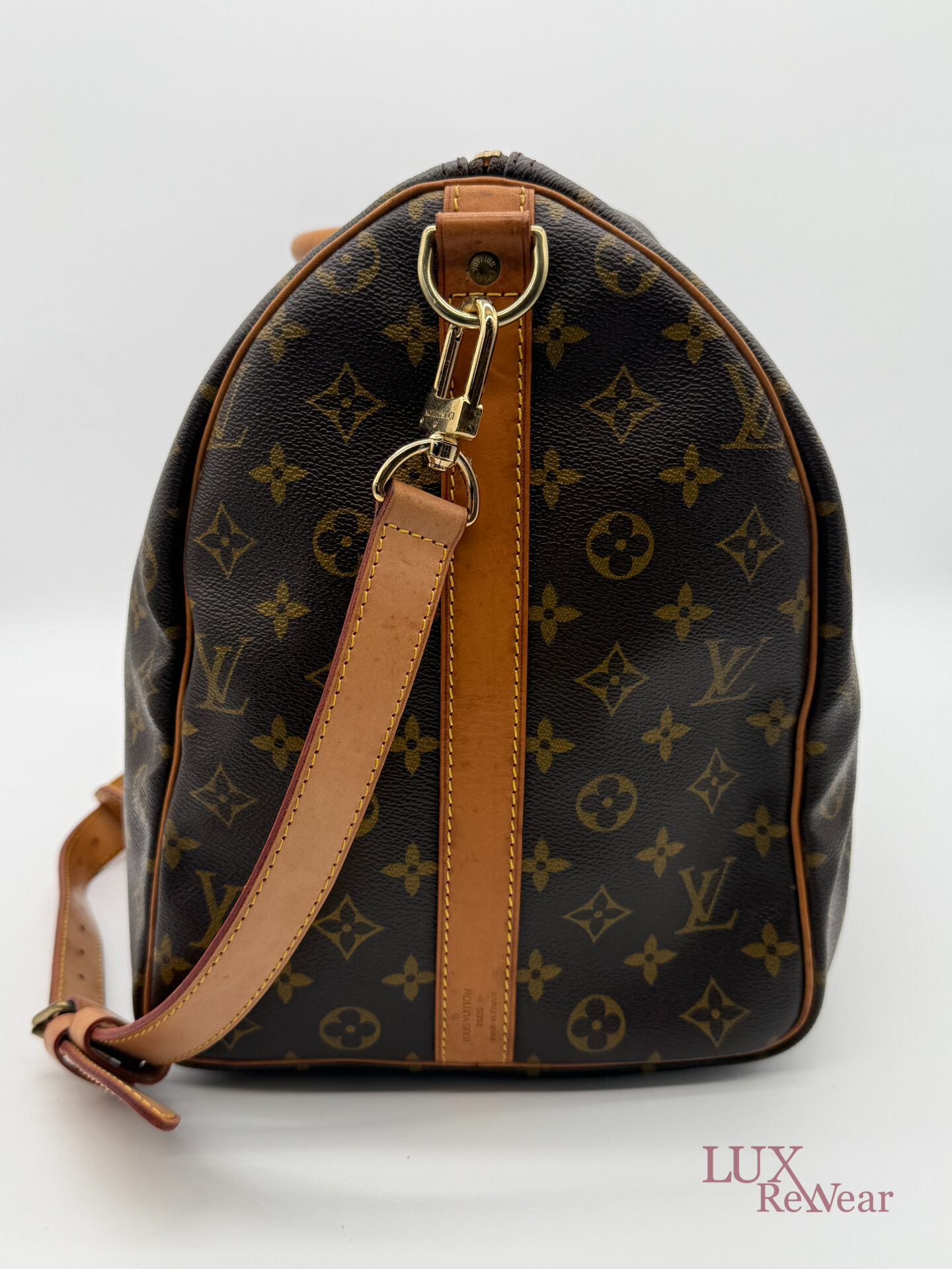 This vintage Louis Vuitton Keepall 50 Bandoulière features monogram canvas, vachetta leather and gold hardware. The item is in good vintage condition, with some general signs of wear. The bag has a long strap to wear over the shoulder. This bag is allowed as hand luggage on the plane. The date code of this item is TH0965 (made in France in June 1995).