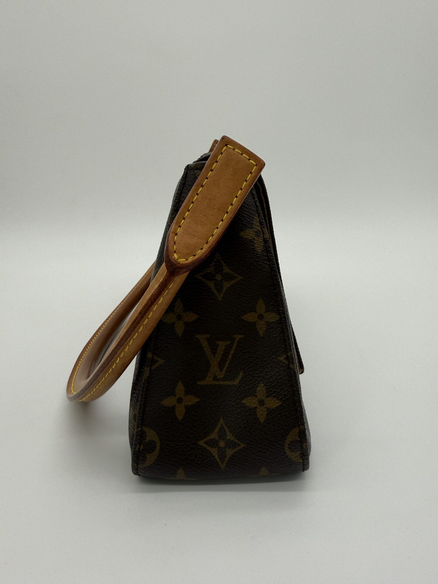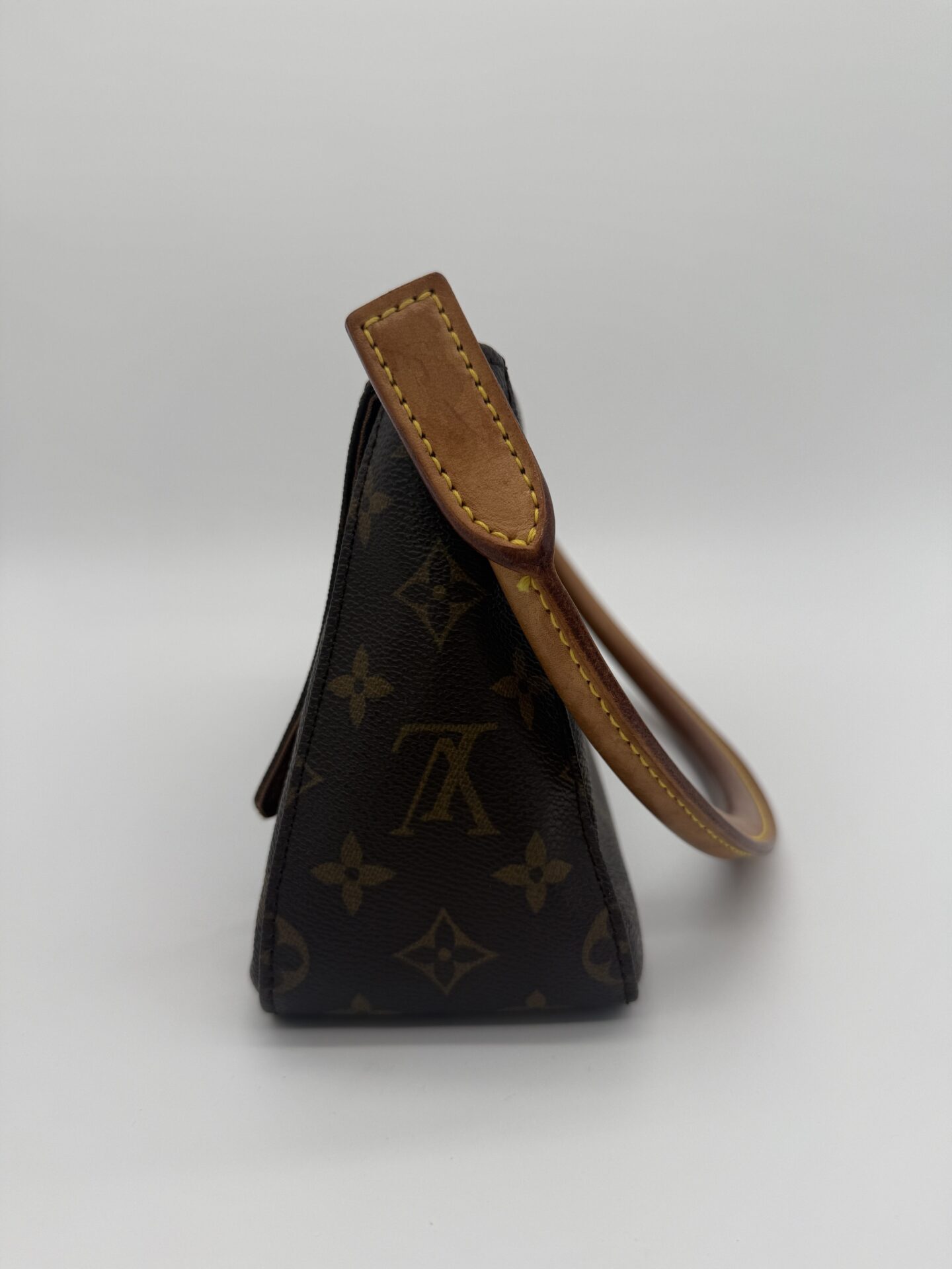This Louis Vuitton mini looping bag features the LV signature Monogram canvas with vachetta leather and gold-tone hardware. The bag has one big compartiment and a zipper pocket inside. This bas is made in May 2001 In France (serial number MI0051).