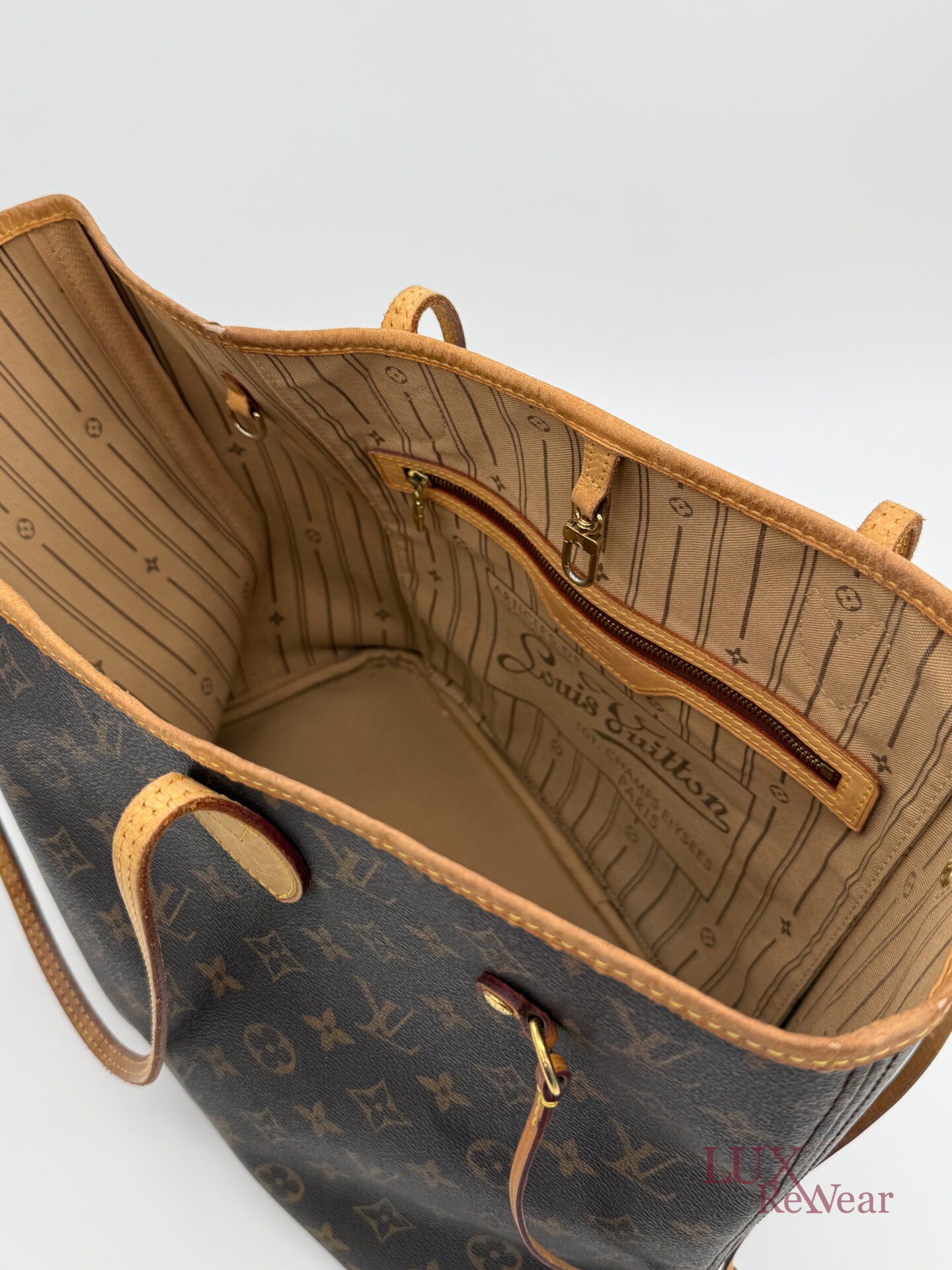 This pre-loved Louis Vuitton Neverfull MM is a stylish classic in iconic Monogram canvas with a beige interior. The vachetta leather details are in perfect condition. Inside, you’ll find a practical zippered pocket for securely storing your essentials. The bag is spacious and functional, perfect for everyday use in style. The date code is AR1141(Made in April 2011 in France).