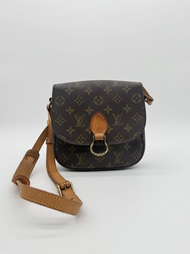 The Louis Vuitton Saint Cloud MM is a classic crossbody bag crafted from Monogram canvas with natural Vachetta leather trim. It features a front flap with gold-tone buckle, an adjustable leather strap, and a spacious interior with extra compartments. Perfect for daily use with a timeless vintage look. The date code is 881VI (Made in France in 1988).