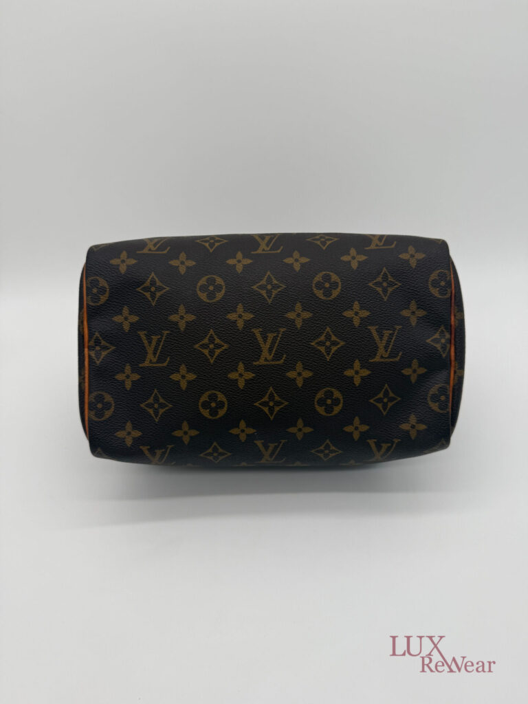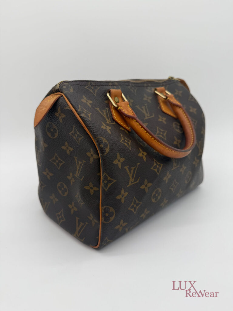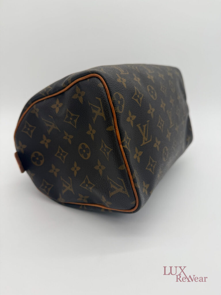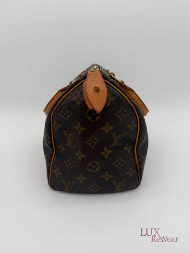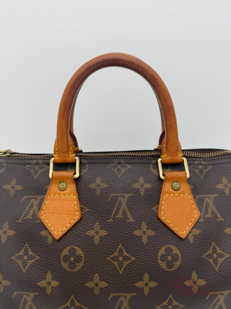 This vintage Louis Vuitton Speedy 25 is made in July 1999 in the U.S.A. (data code SD0979). The bag is made from canvas with the monogram print with the vachetta leather details and leather trims. This bag has one big compartiment and a slip-in pocket.